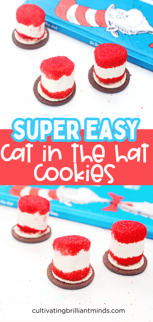 This Cat in the Hat treat also encourages conversation about favorite characters and moments from the story. Do kids identify most with the children, the cat, or Thing 1 & Thing 2? A Dr. Seuss Day food idea that pairs well with literature helps bridge abstract and tangible experiences, strengthening comprehension.