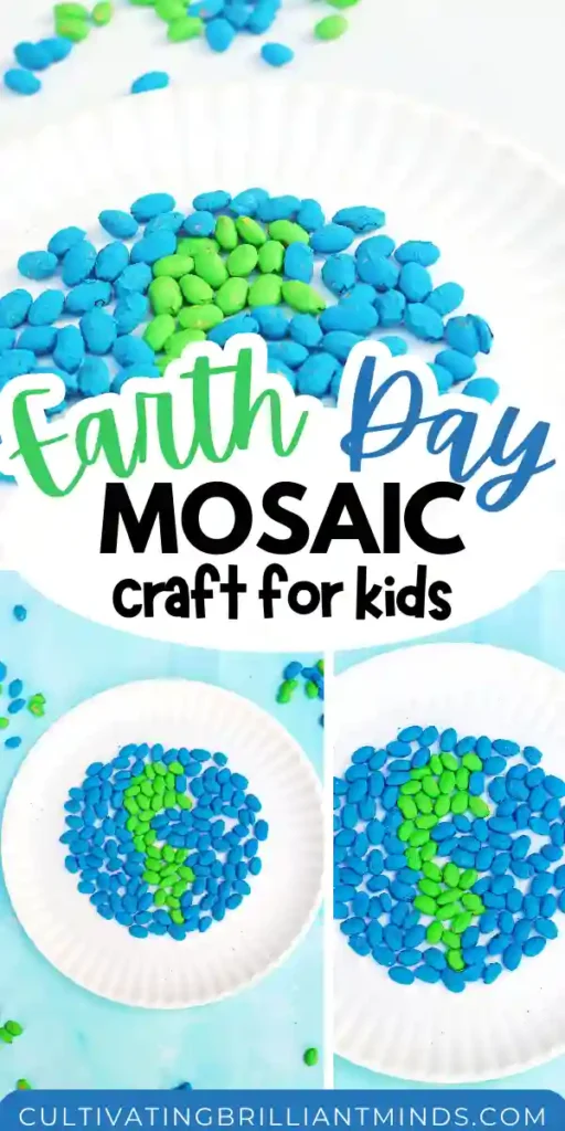 Creating a visual representation like an Earth mosaic craft helps children connect abstract environmental concepts to something they can see and touch.