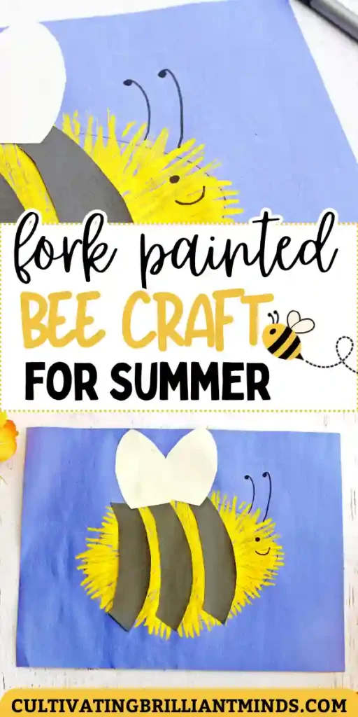 This fork painted bee craft is the perfect summer craft for kids! Using construction paper and paint, kids will create a bright and beautiful bee.