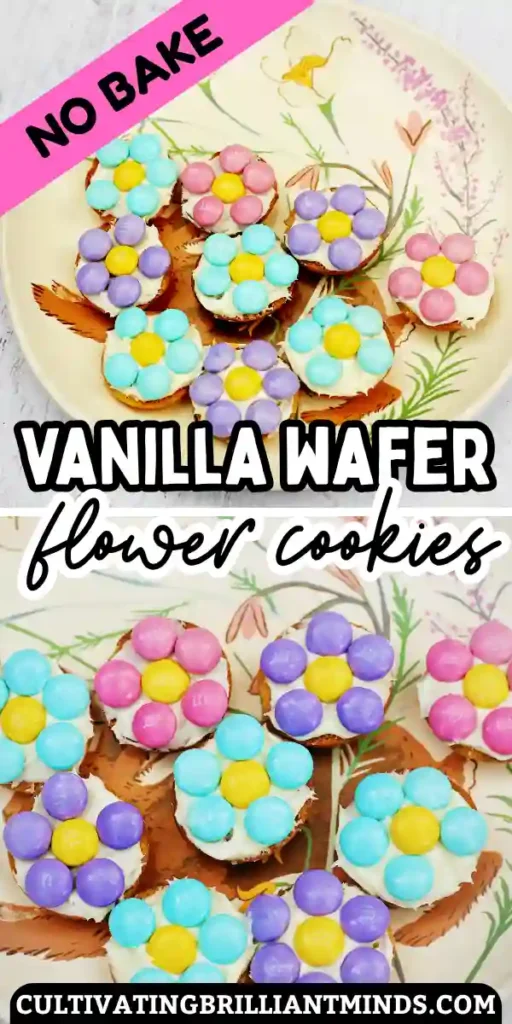 Vanilla wafers flower cookies store well for short periods. Place them in an airtight container at room temperature for up to one day. The frosting may soften the cookies slightly over time, so it’s best to serve them soon after decorating to keep the texture at its best.