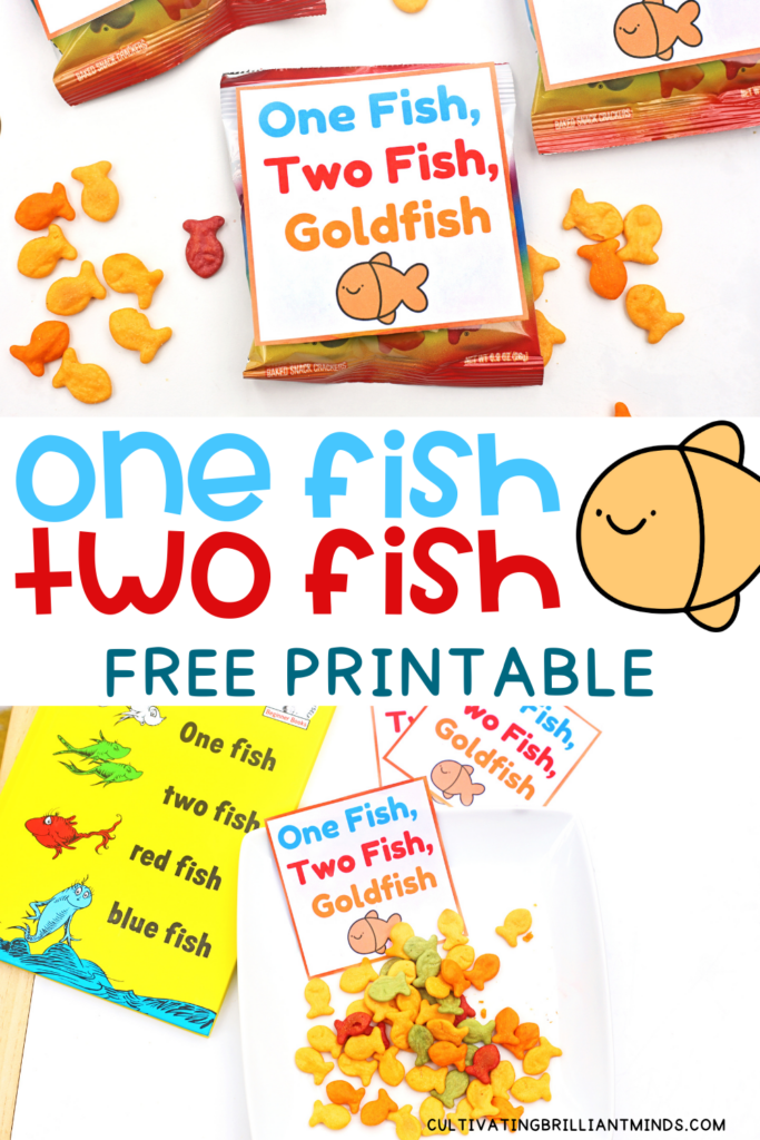 - One Fish, Two Fish, Goldfish Printable for a Dr. Seuss Inspired SnackThis One Fish, Two Fish, Goldfish printable pairs with goldfish crackers to create a Dr. Seuss inspired snack that connects reading and food in a fun way.