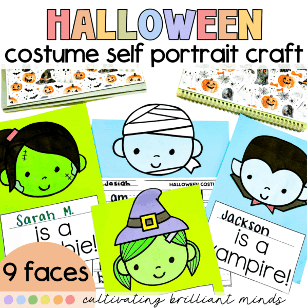 Get your students writing like pros this Halloween with these fun Halloween costume writing crafts! These self-portrait crafts comes with 9 Halloween faces, a blank writing page, and a banner for student names. Students will draw and color themselves in the template and write their names in the banner. I have also included a blank…