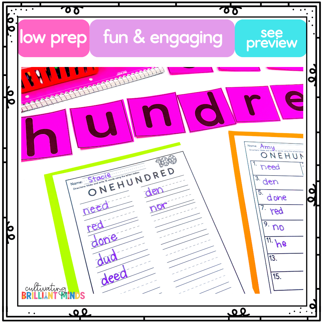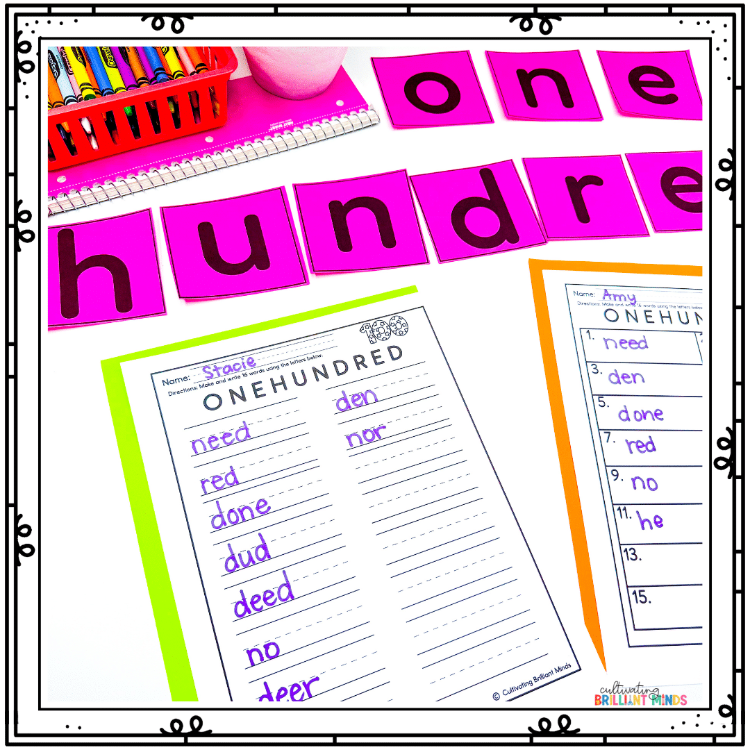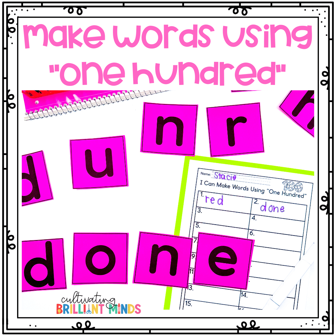Celebrate the 100th Day of School with this fun Making Words Activity! Students will make 16 words using the letters in “One Hundred.” This 100th day activity is the perfect way to tie literacy into your 100th day of school!