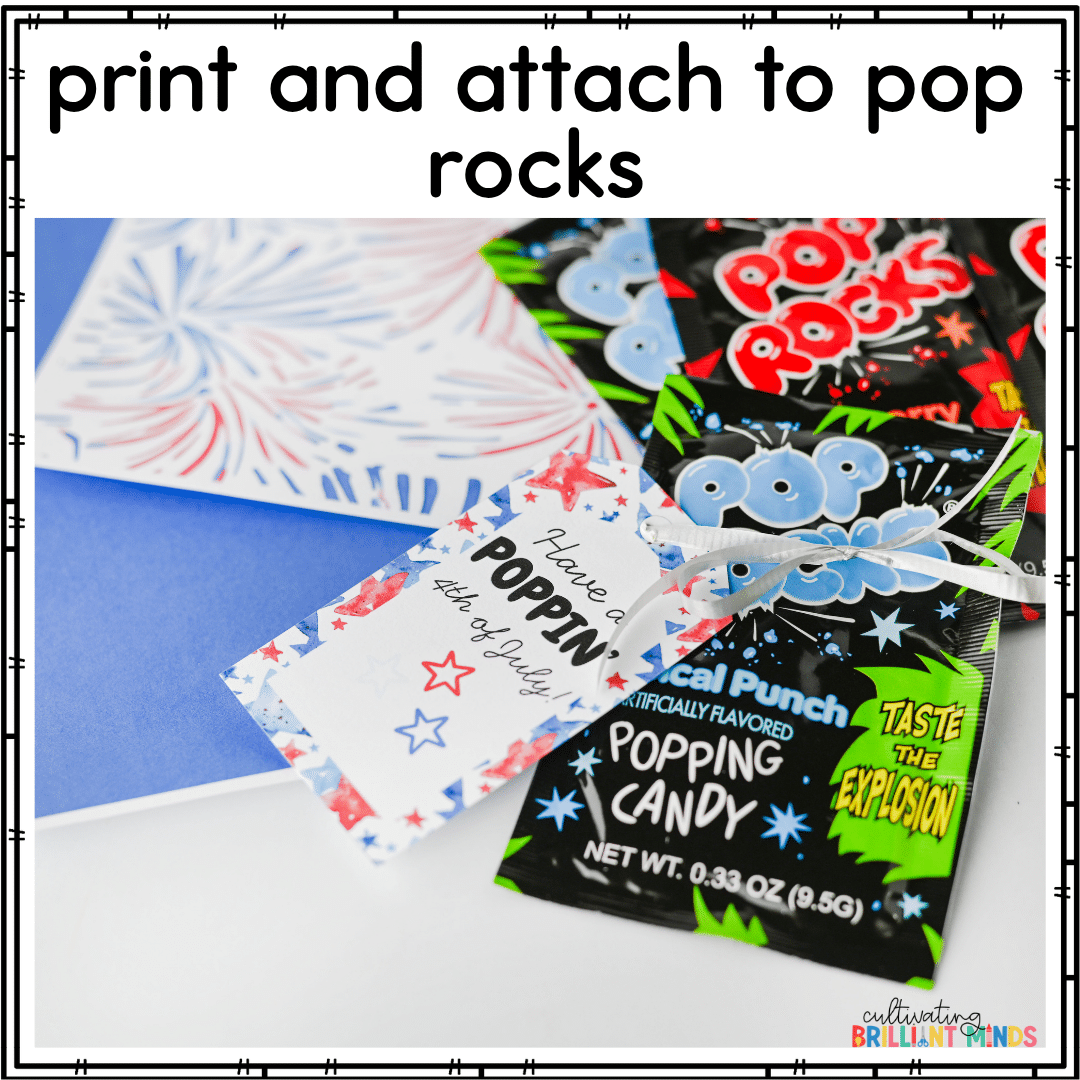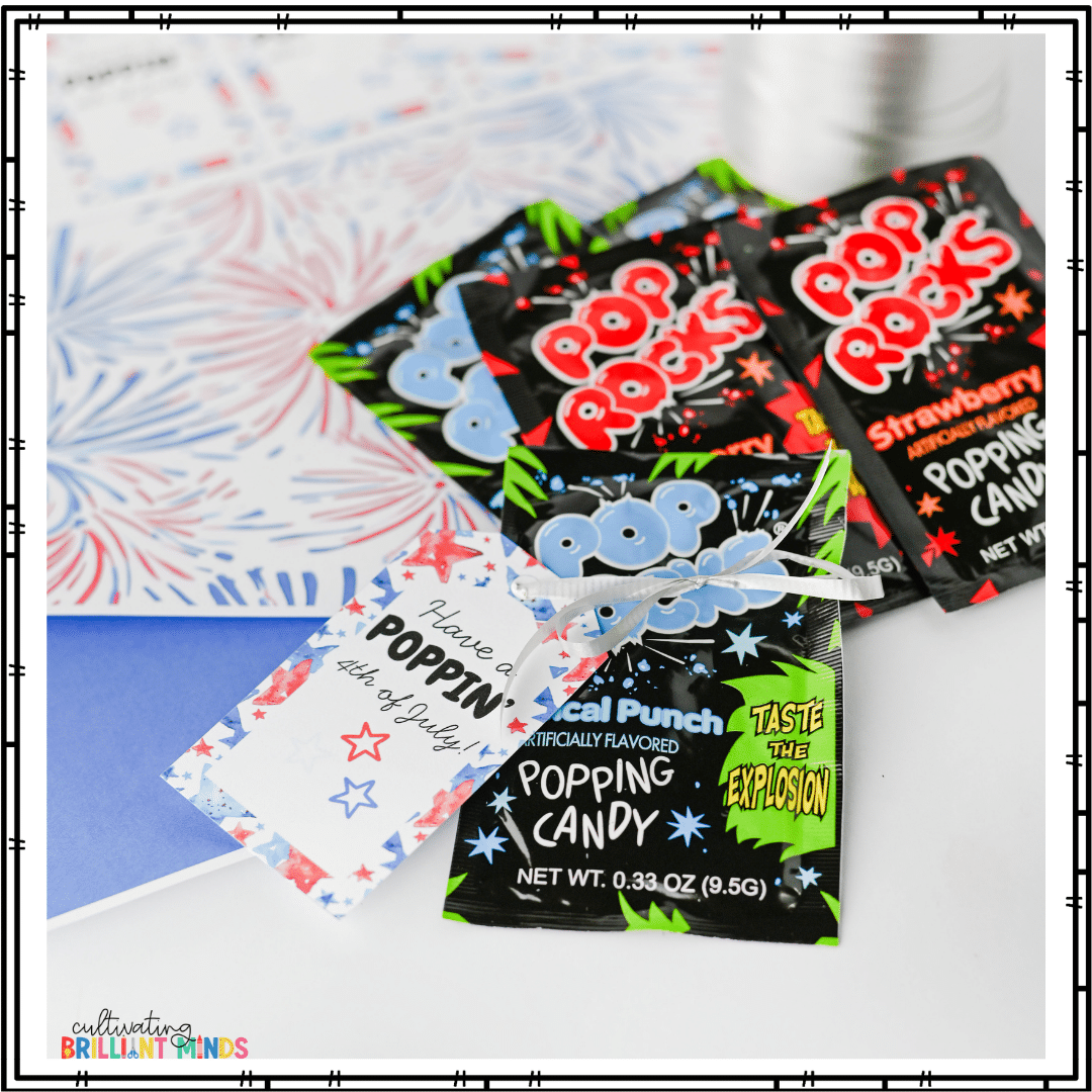 Celebrate the 4th of July with these Pop Rock Summer Gift Tags for students. These Fourth of July gift tags will work with any kind of pop rocks (grab some at the Dollar Store to save money). They are a great, inexpensive way to wish your students a happy 4th. They work really well for teachers who are teaching summer school.