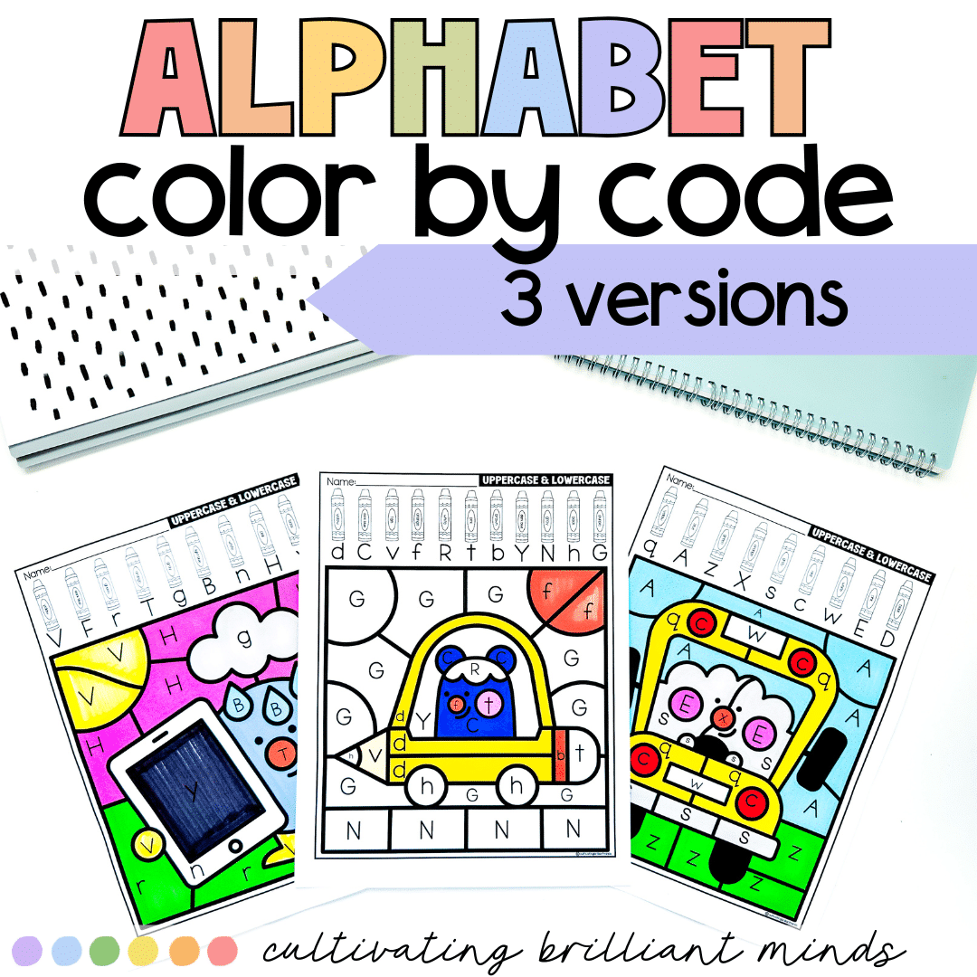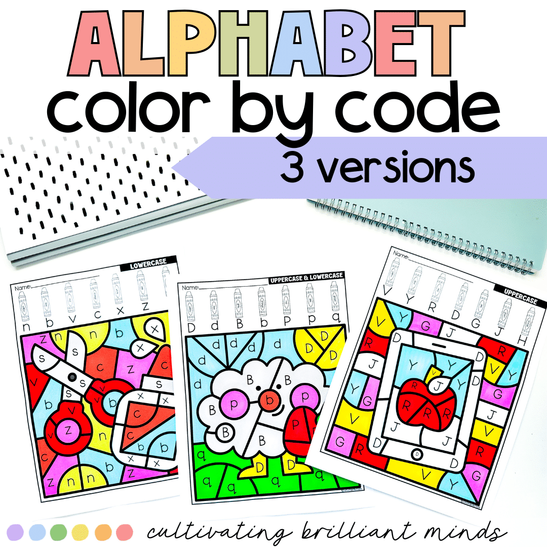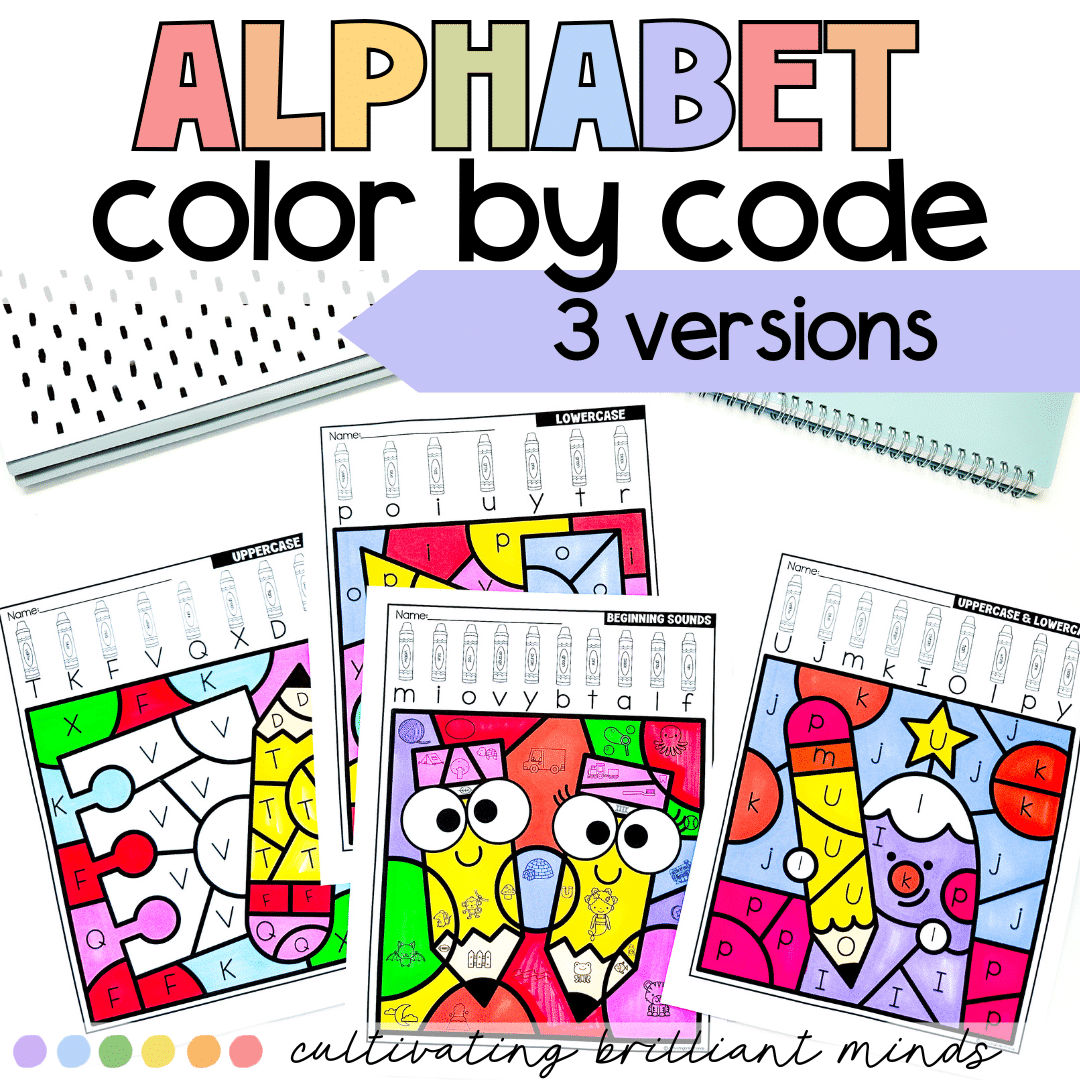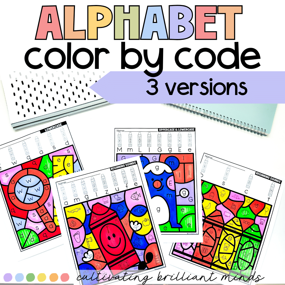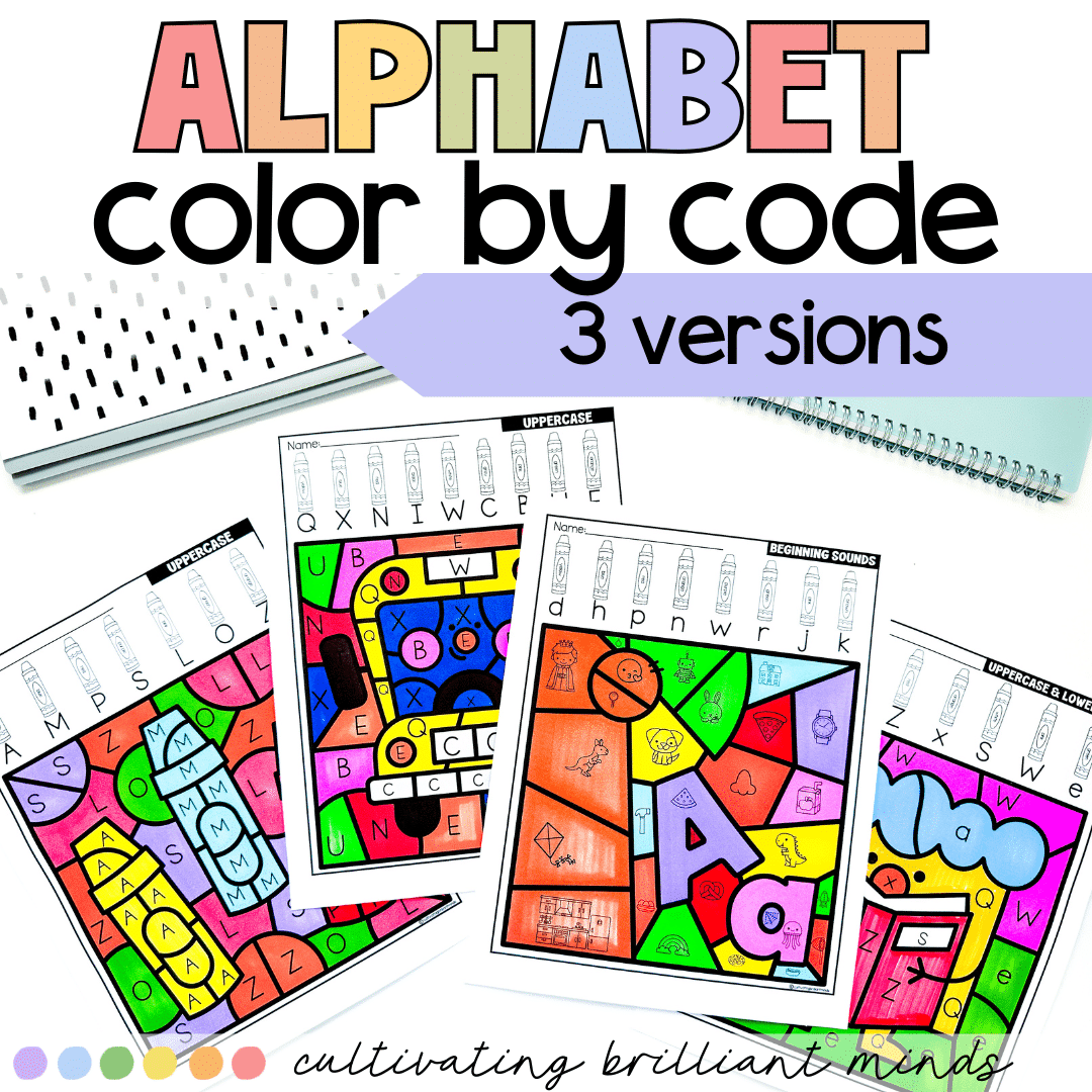 The hands-on and engaging Alphabet Color by Code includes 21 Color by Codes that include uppercase letters, lowercase letters, beginning sounds, and ending sounds.