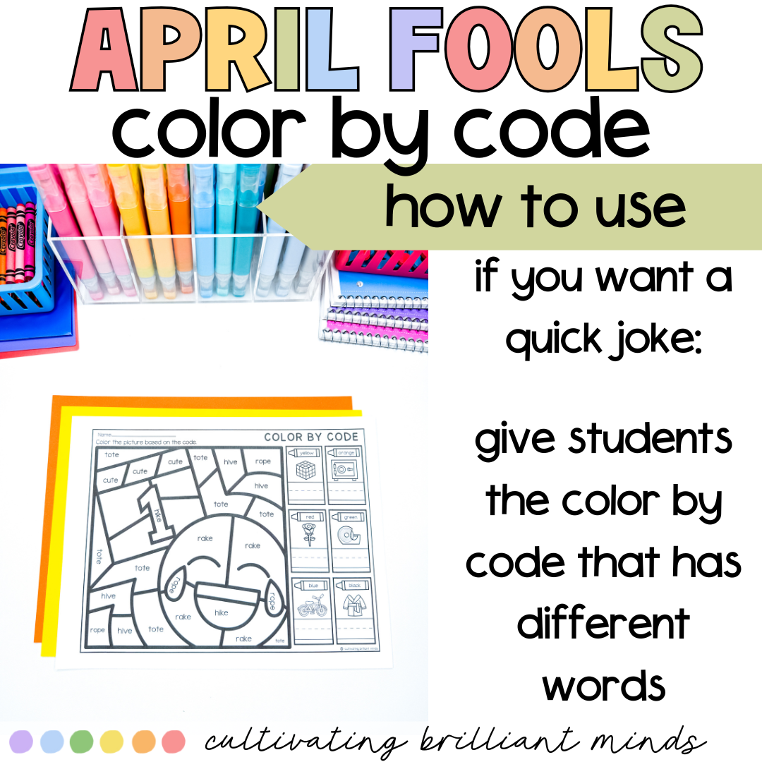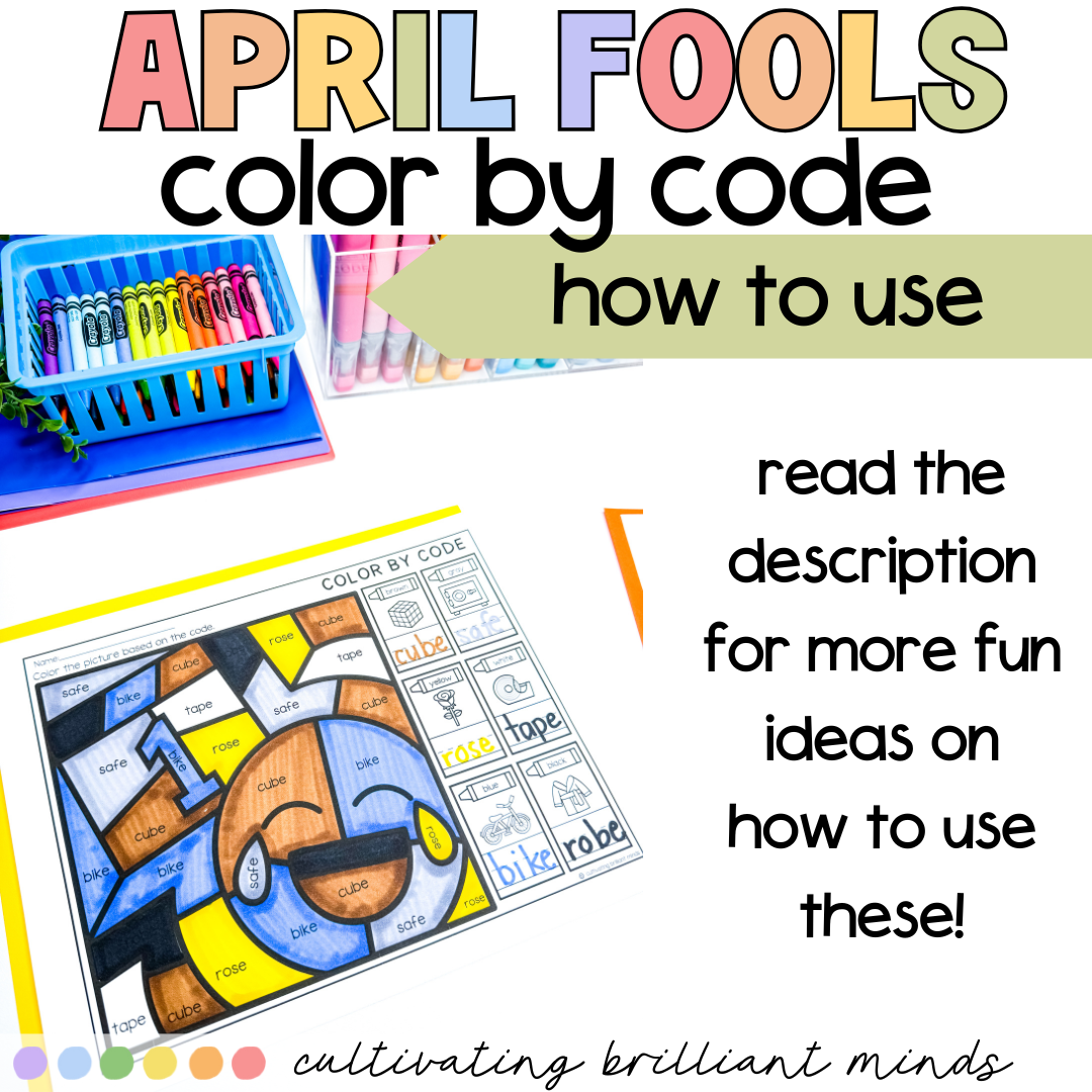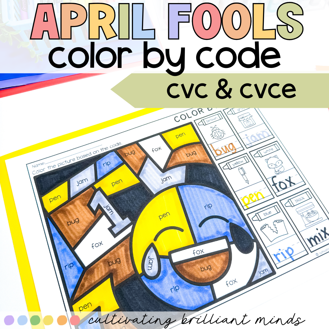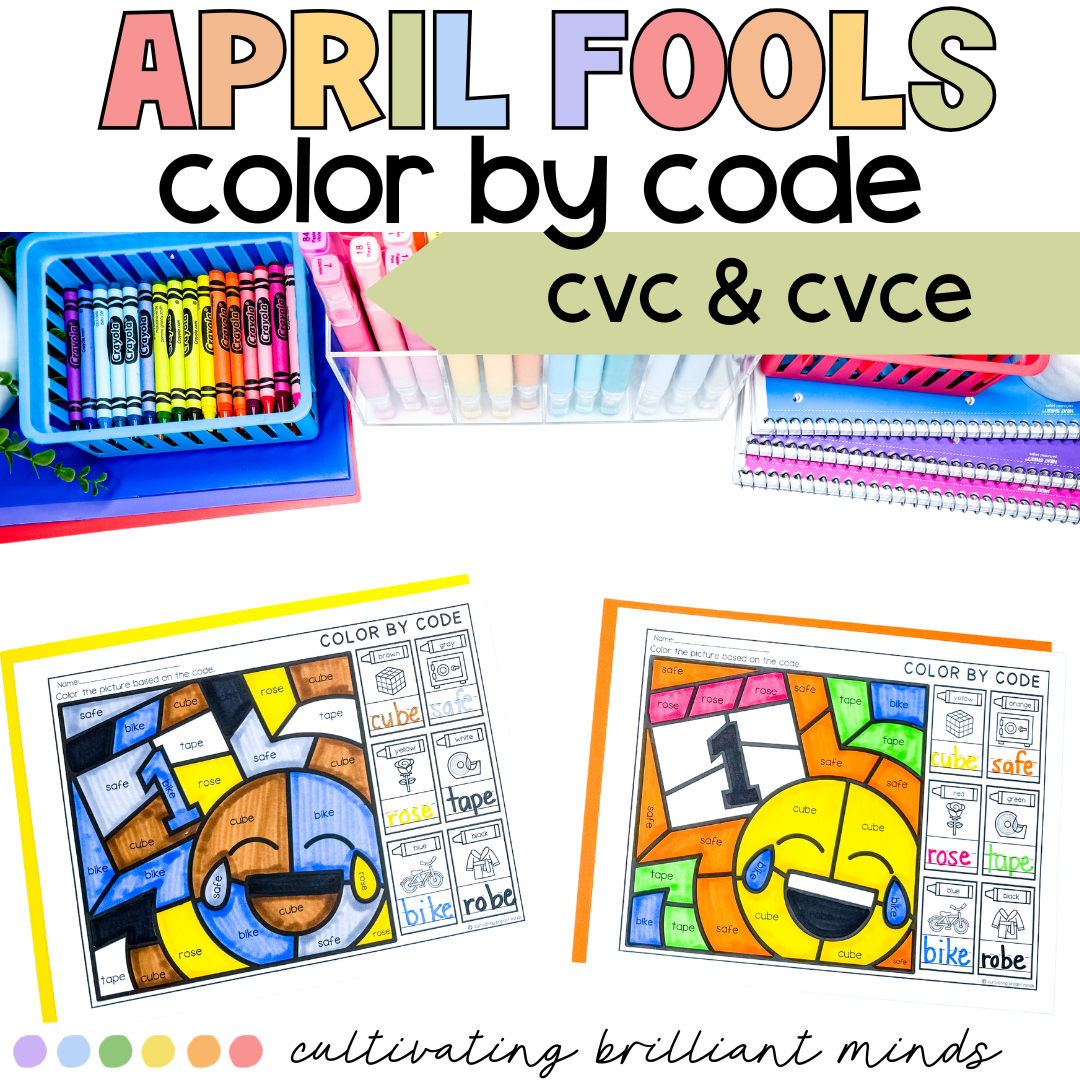 Are you trying to play a joke on your students this April Fool’s Day? My April Fools Day color by code is the perfect no-prep joke to play on your students! It includes 6 worksheets, 3 CVC worksheets and 3 CVCe worksheets. Each version includes a regular color by code, a color by code with outrageous colors, and a color by code that has none of the words in it!