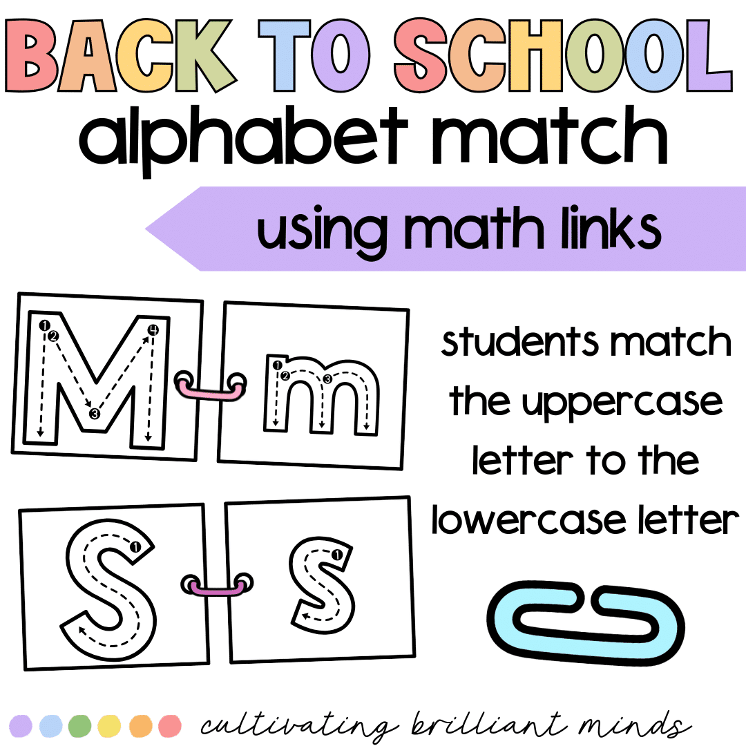 Are you looking for a fun Back to School Alpahbet Matching Center? My Alphabet Literacy Center is perfect for kindergarten and first grade students to practice uppercase and lowercase letters. This center requires math links. Students will use the links to connect the letters. Students can also trace the letters.