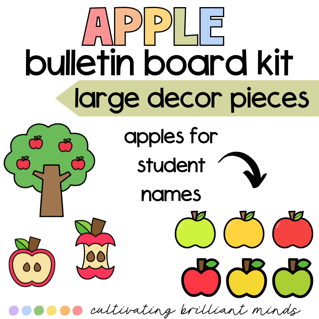 Use the editable apples for student names and the larger apples and tree for decor pieces.