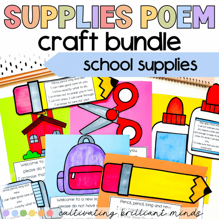 Are you looking for a way to teach students the proper way to use their school supplies? My back to school crafts with poems are the perfect way to introduce how to use supplies correctly. Students will color and assemble the craft and glue them on construction paper with the poem. It includes student-friendly directions!