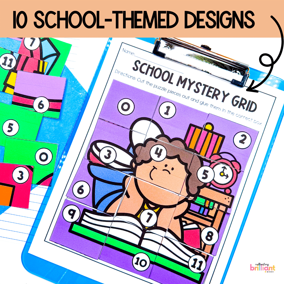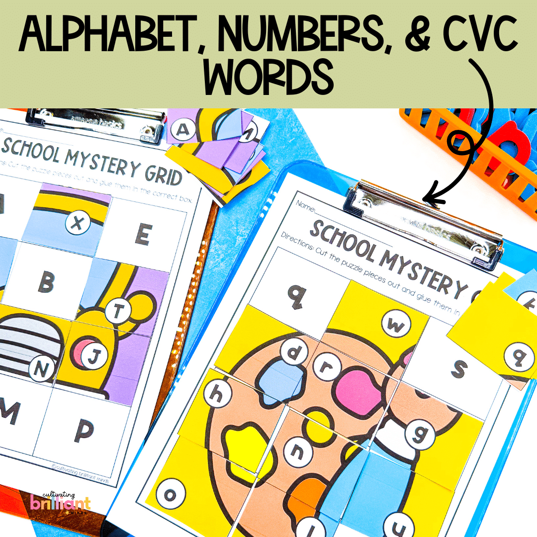 These hands-on and engaging Back to School Mystery Grids will help your students practice the alphabet, numbers, and cvc words this August! Featuring 10 mystery grids, your students can practice essential math and literacy skills.