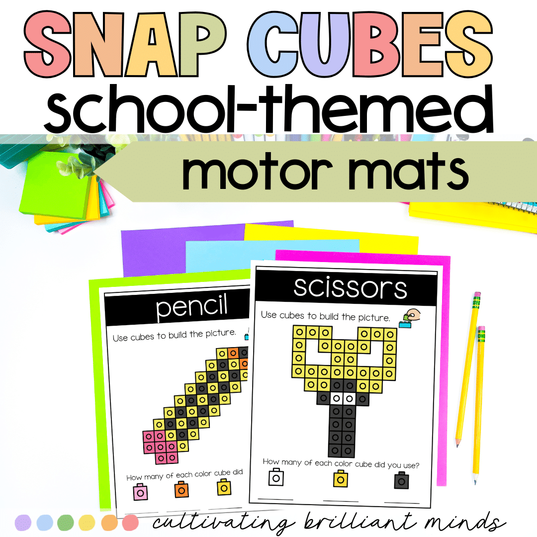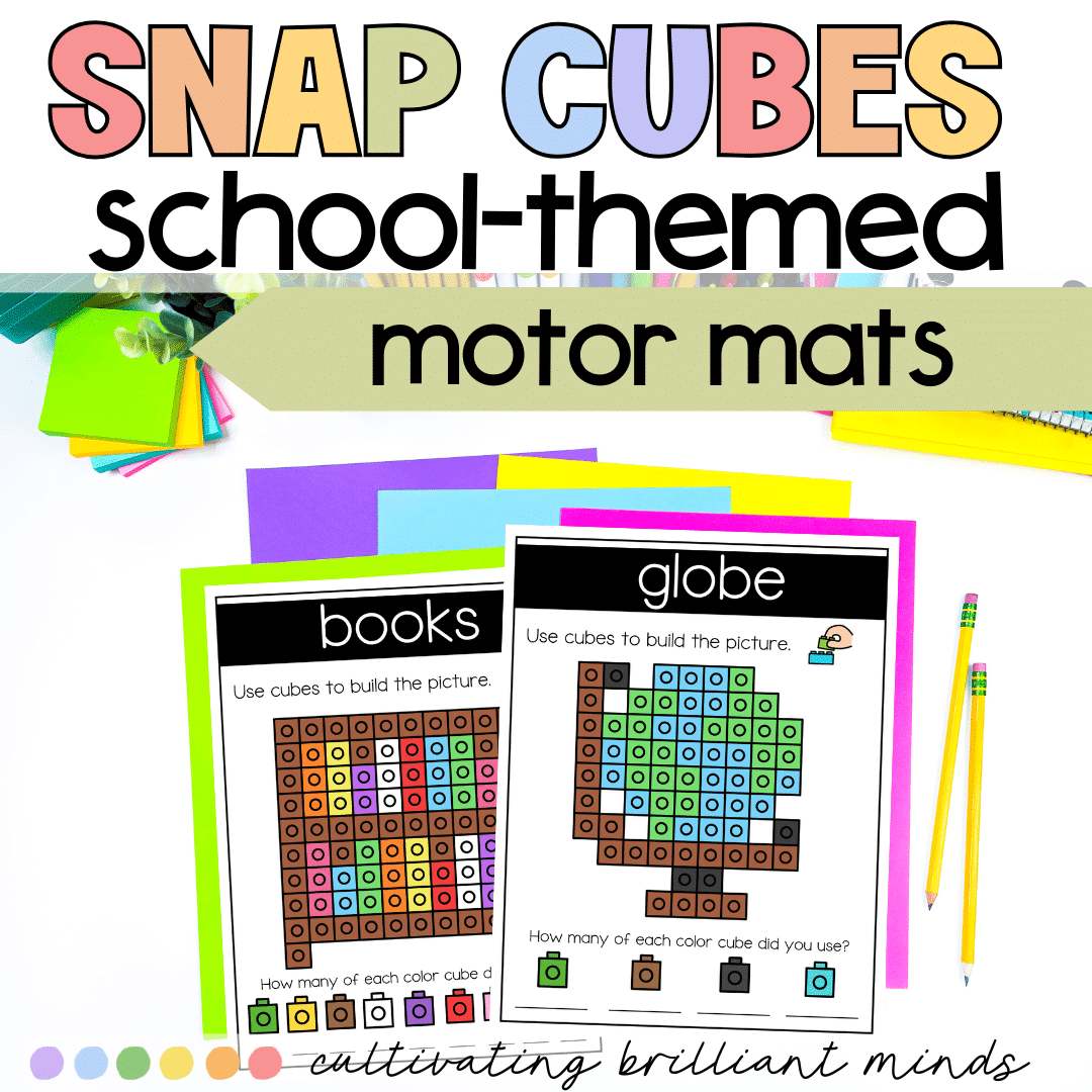 These hands-on and engaging Back to School Snap Cube Mats are perfect if you’re looking for a fun, low-prep center that focuses on motor skills! Simply print & laminate! Students will love creating school-themed items with snap cubes! These are perfect for targeting motor skills & make great centers or morning tubs.