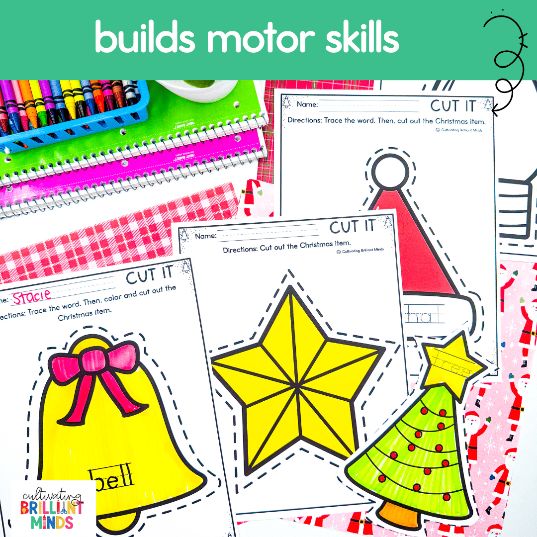 Get your students building motor skills like pros this December with these fun Christmas-themed fine motor scissor skill cutting activities! Your students will love making these Christmas-themed items by coloring and cutting with these hands-on and engaging cards that will help build the muscles in their hands and fingers. Use these fun motor activities for morning work, morning tubs, centers, or sub plans!