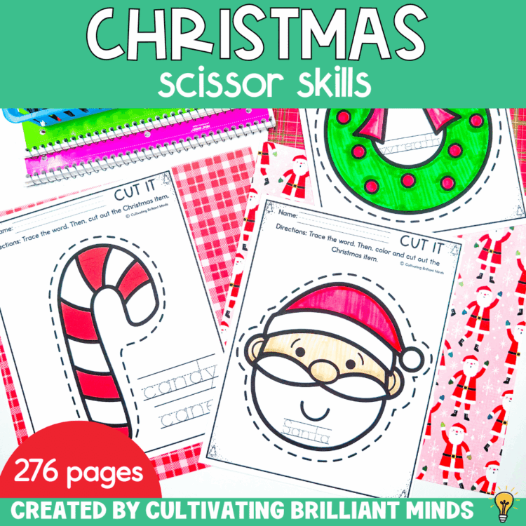 - 276 pages of Christmas cutting practice with multiple types of lines (zigzag, wavy, curved, etc.)