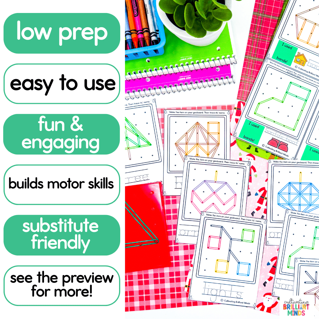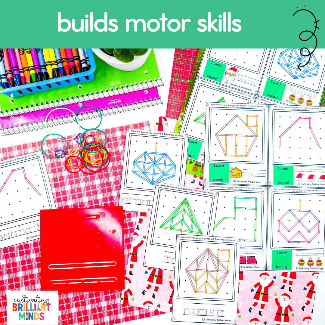 Get your students building motor skills like pros this December with these fun Christmas-themed fine motor skill geoboard cards ! Your students will love making these Christmas-themed items on their geobaords with these hands-on and engaging cards that will help build the muscles in their hands and fingers. Use these fun motor activities for morning work, morning tubs, centers, or sub plans!