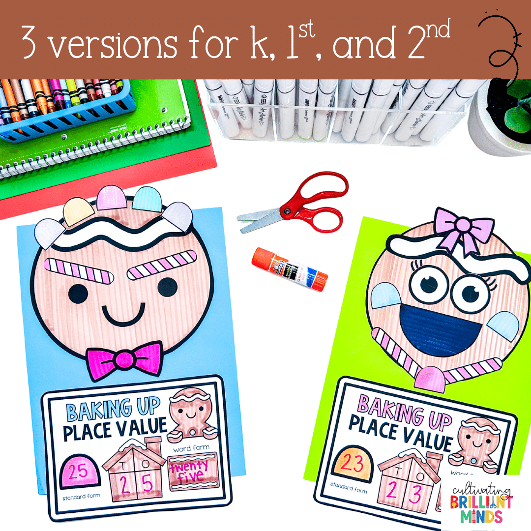 Get your students understanding place value like pros this December with these fun Christmas Gingerbread Place Value Activities! Students will love this Christmas craft where they create gingerbread people and use ten frames or base ten blocks on them. There’s also an option to use candy canes at tens and gumdrops as ones! This math activity includes 3 versions for kindergarten, first grade, and second grade to easily differentiate to meet your students’ needs.
