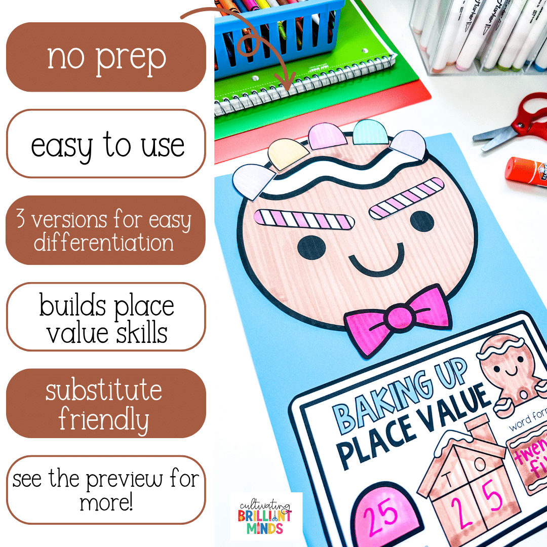 Christmas Gingerbread Place Value Activity Craft | Math Center Word Form K/1/2