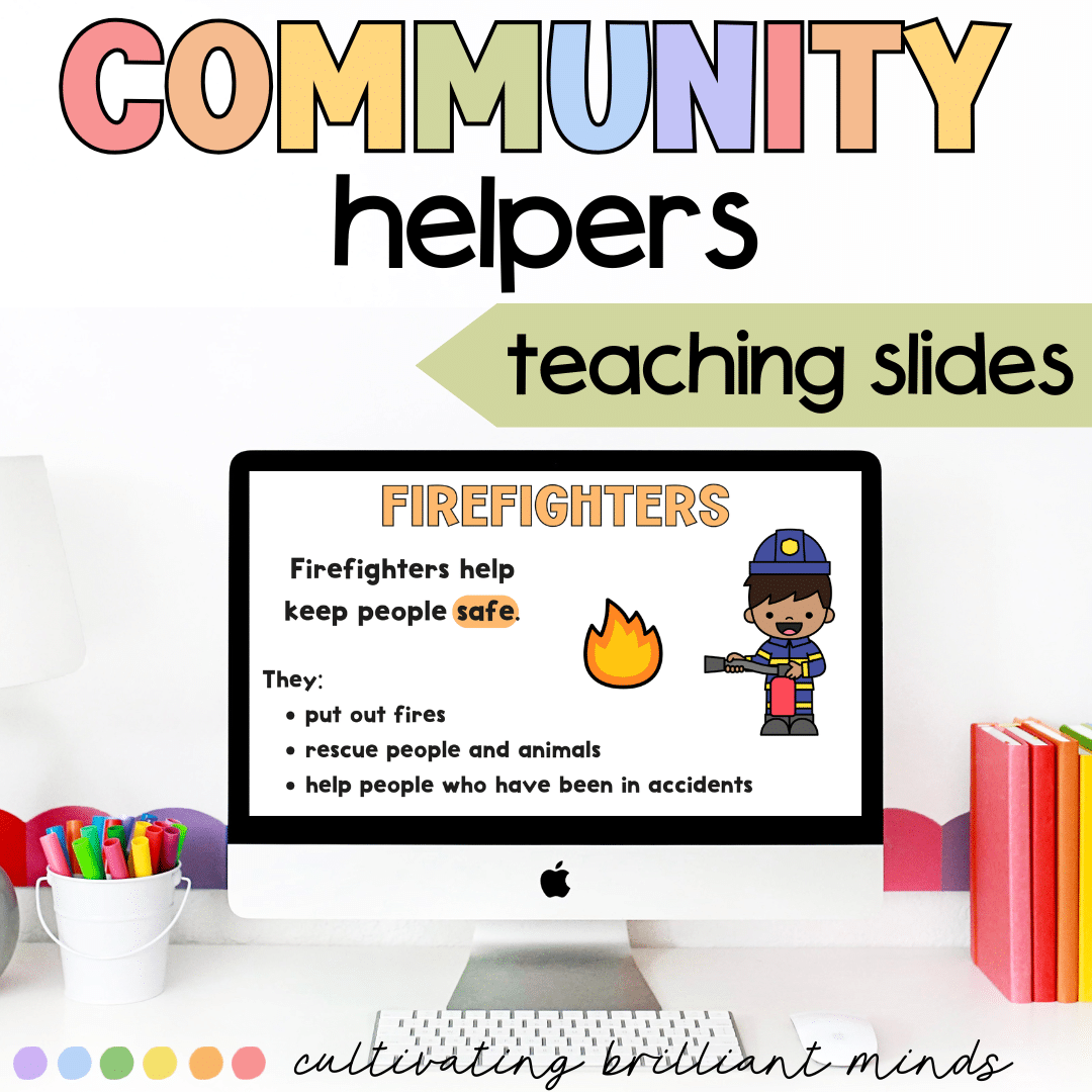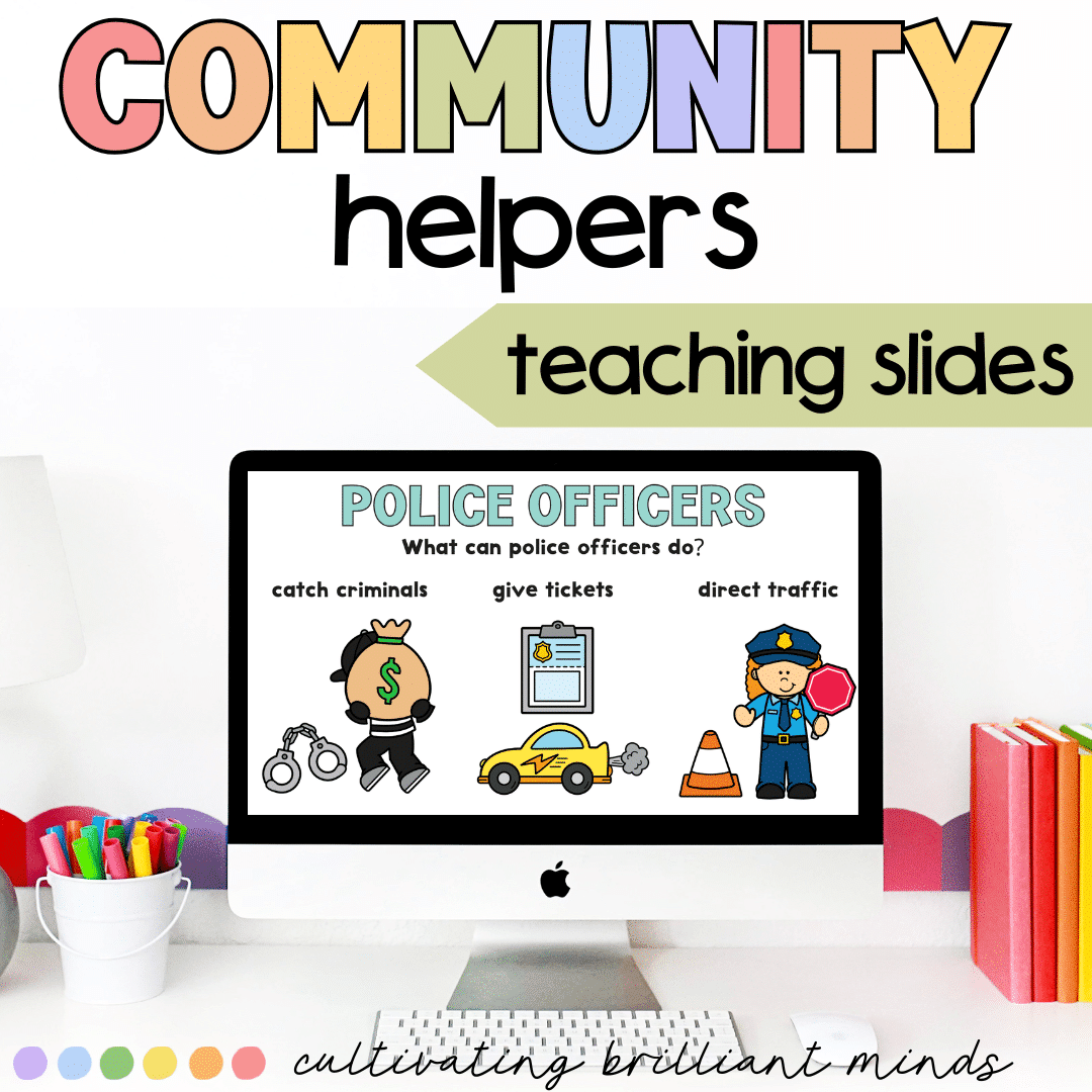 Are you looking for a fun way to teach about Community Helpers? My Google Slides Digital Teaching Slides include 71 slides and 9 community helpers. It focuses on what each community helper does and the tools they use. Use this as an introduction to your community helper unit! These slides are interactive, to keep students engaged while learning!