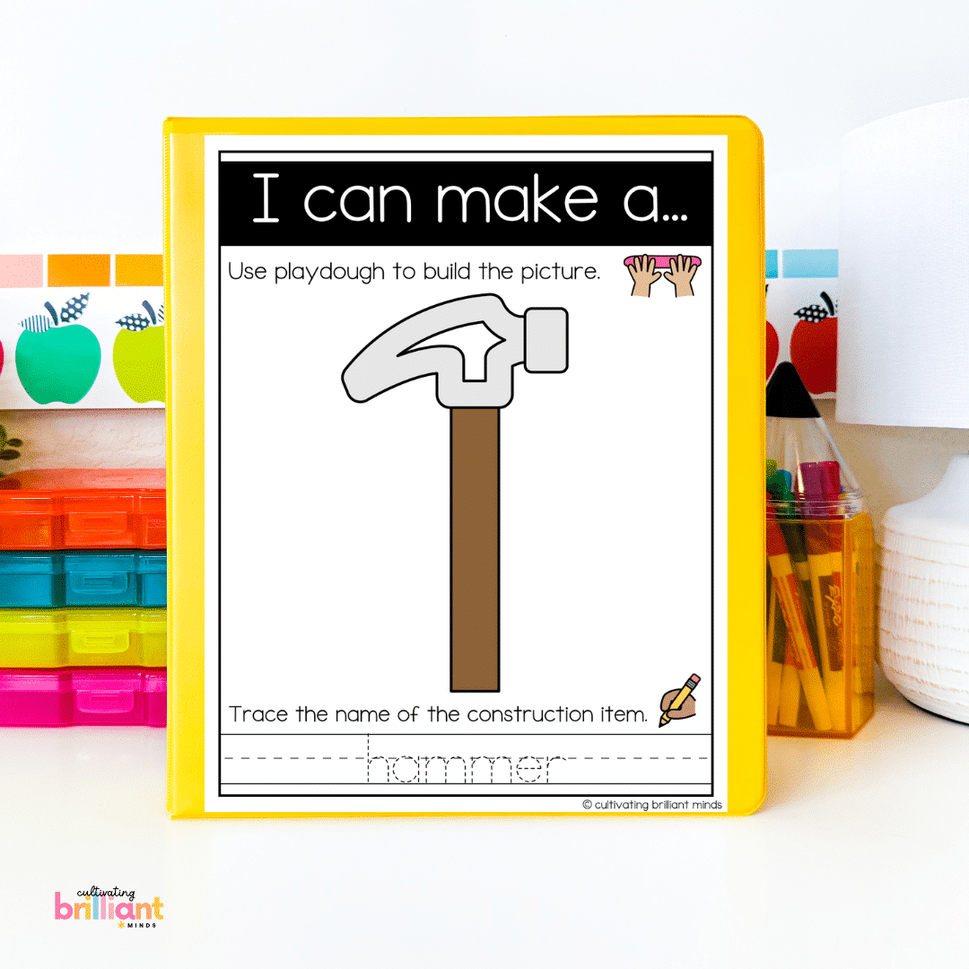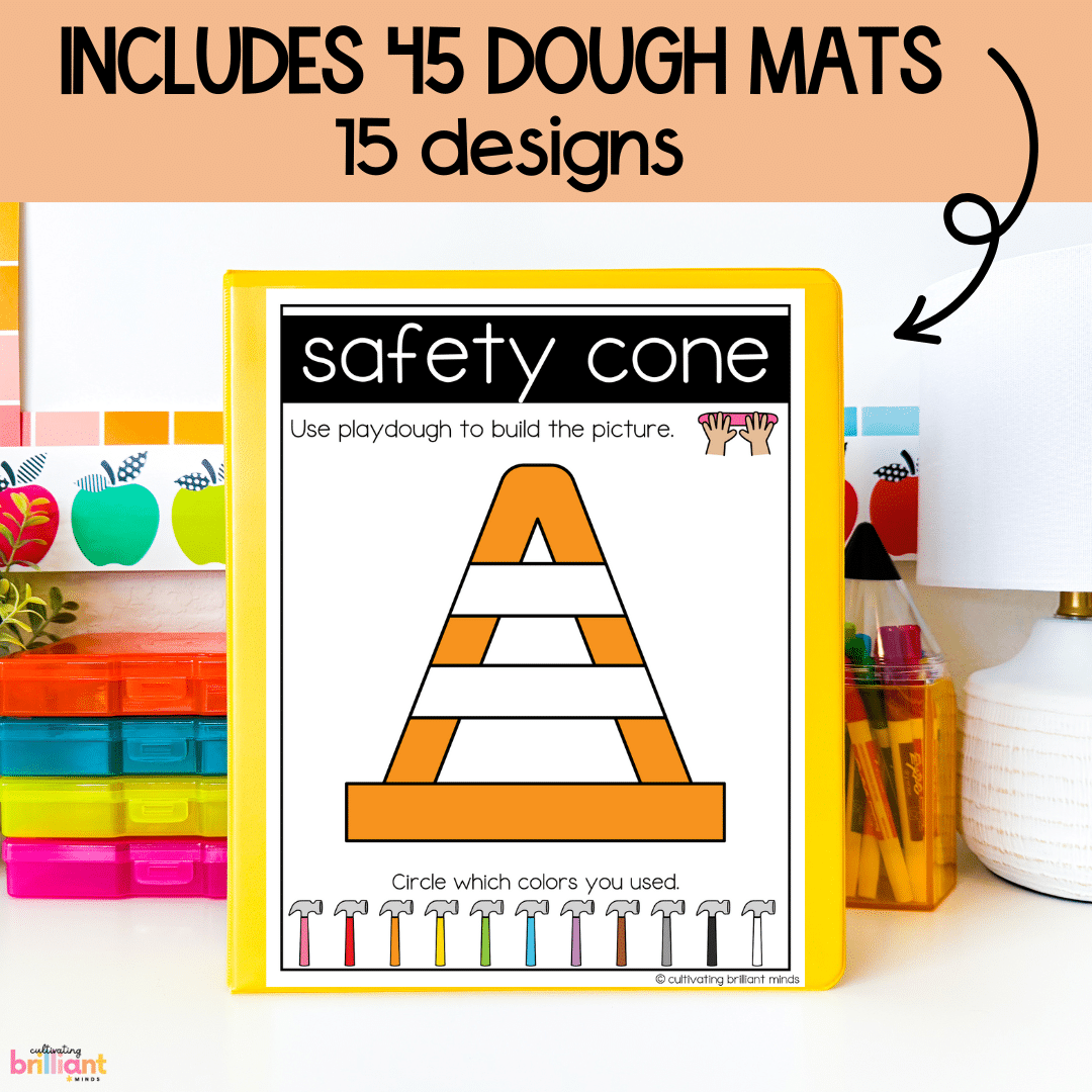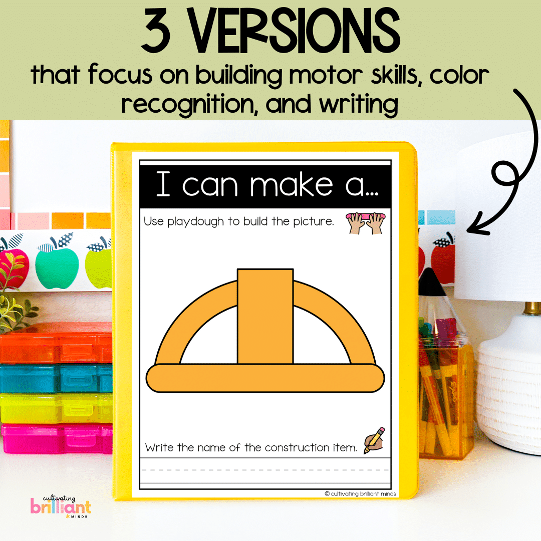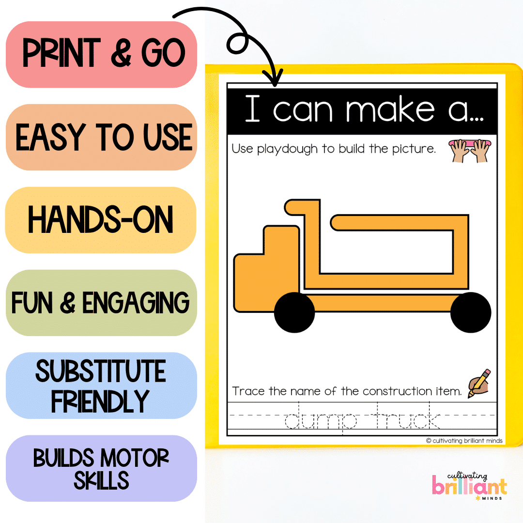 Get your students building their fine motor skills with these fun hands-on Construction Playdough Mats! This low-prep center is easy to implement and focuses on color recognition and writing. These playdough activities are perfect for targeting motor skills & make great centers or morning tubs.