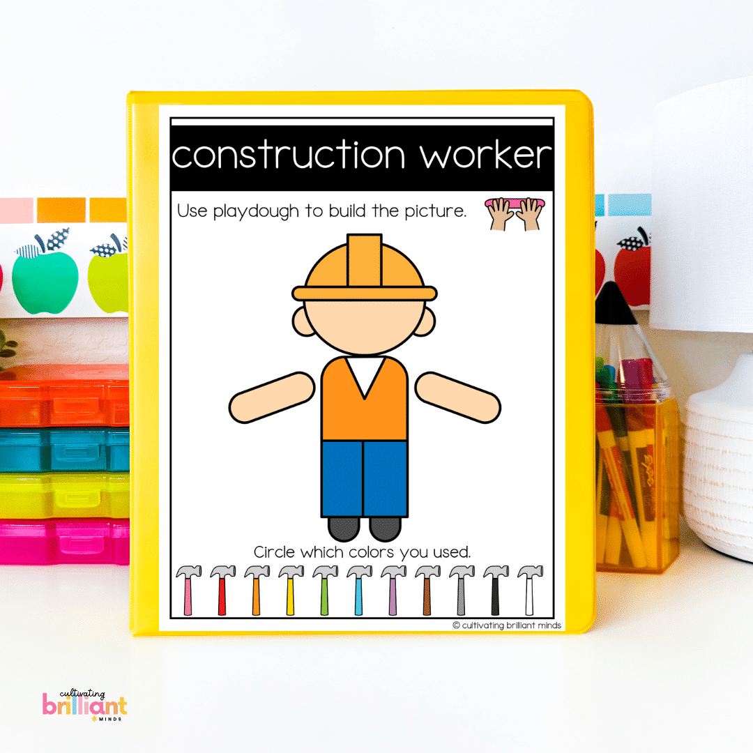 VERSION 1: Students will use dough to make the construction-themed object and then circle which colors they used.