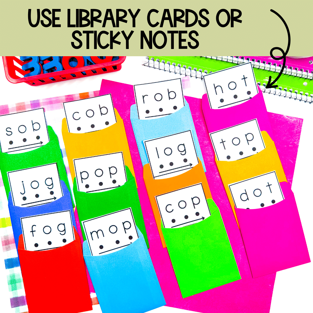 Option 1: Use library cards to hold the cards with only with word sticking out. Students will read the word, then pull the card out to check their answer.
