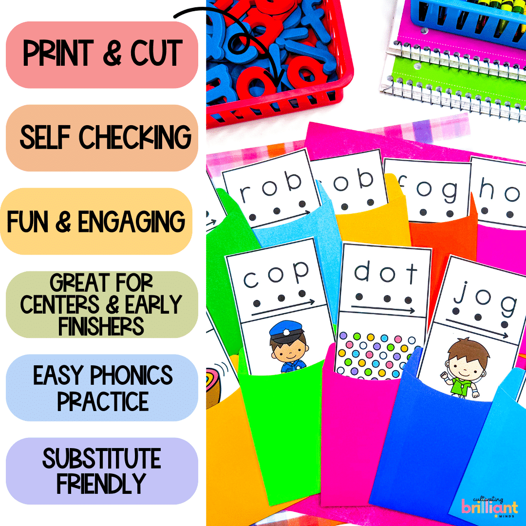 Get your students reading CVC Short A Words like pros with these fun and engaging self checking mystery word phonics centers! Featuring 21 Short A Words, your students will be decoding and reading CVC Short A words in no time!