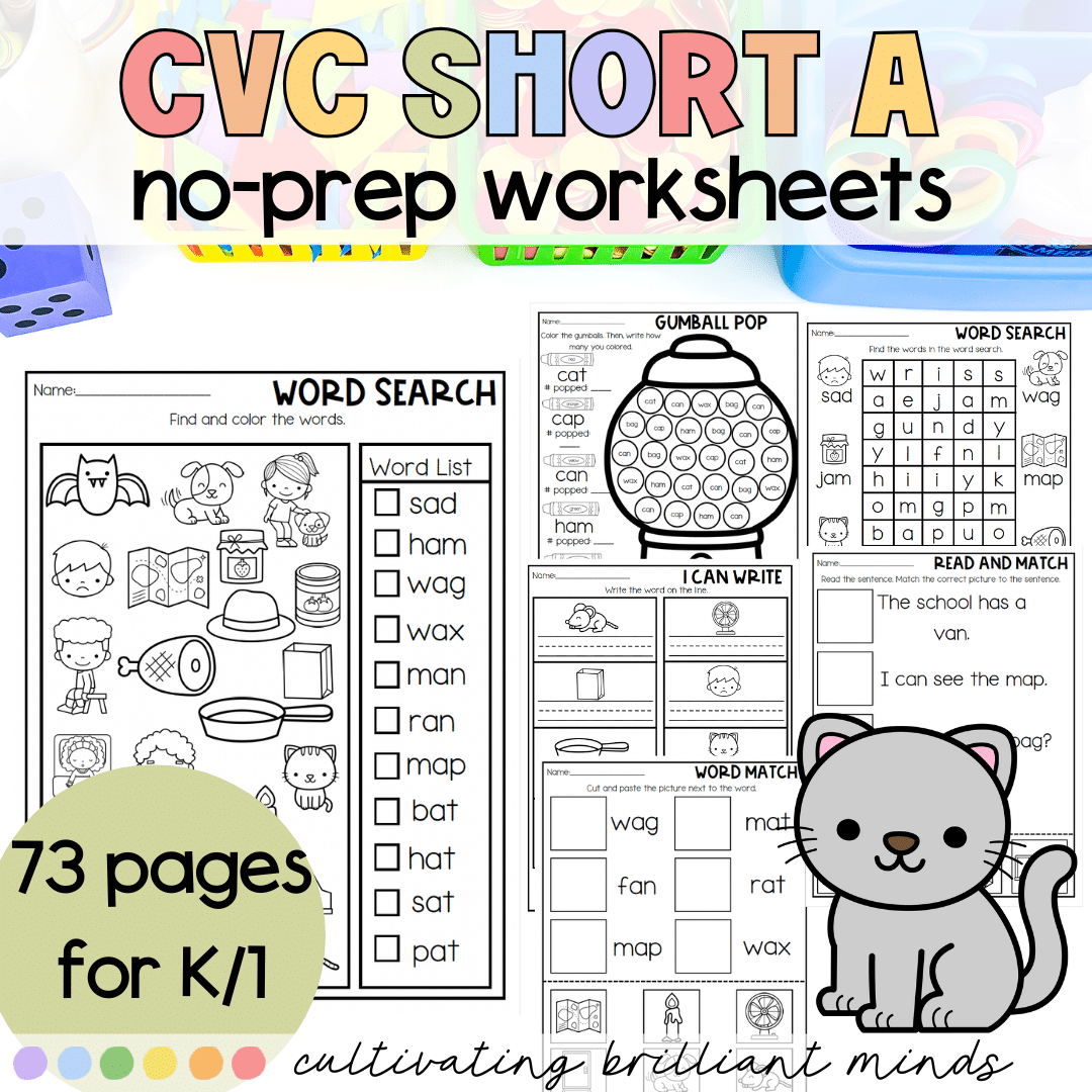 Why you and your students will love these no prep cvc short a worksheets: