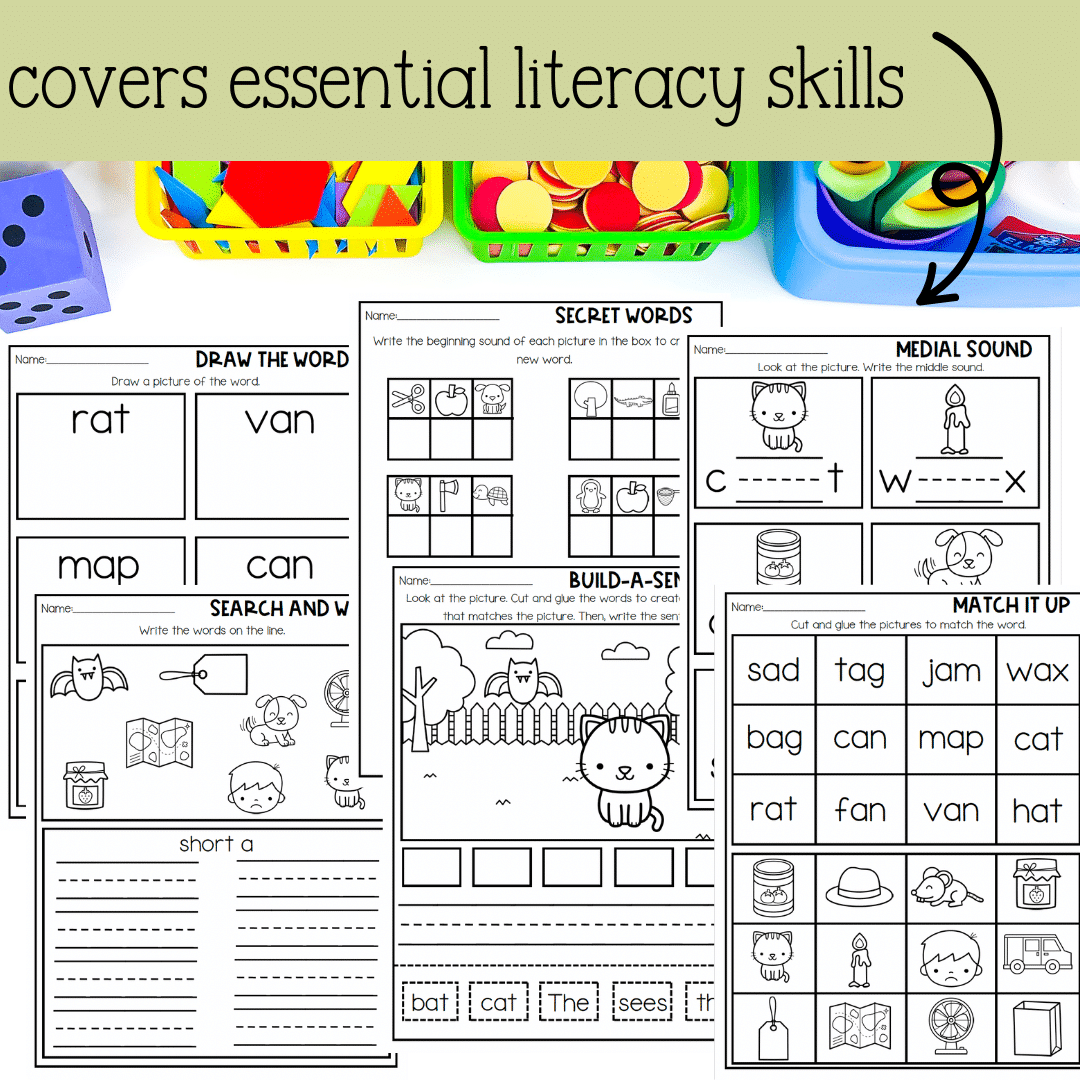 Keywords: CVC Words | Kindergarten | First Grade | Short A Words | No Prep Literacy Worksheets | No Prep Phonics Worksheets