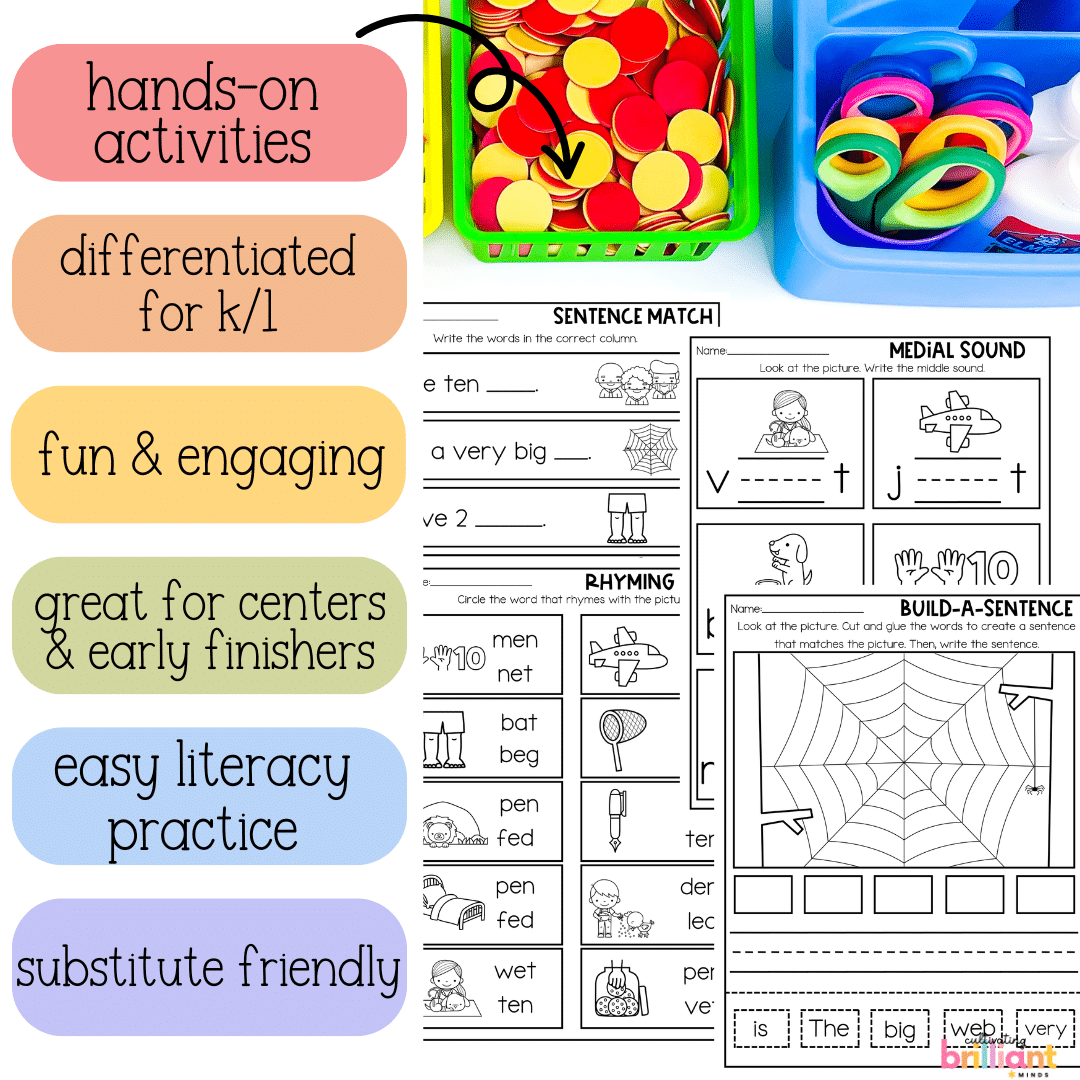 Are you guilty of having worksheets for every center? (don’t worry – I was, too!). This is why I created these hands-on centers that focus on phonics patterns and motor skills. With a mixture of fun worksheets and hands-on activities, your students will learn their phonics patterns while staying engaged (which also decreases behavioral problems – WIN-WIN!!)