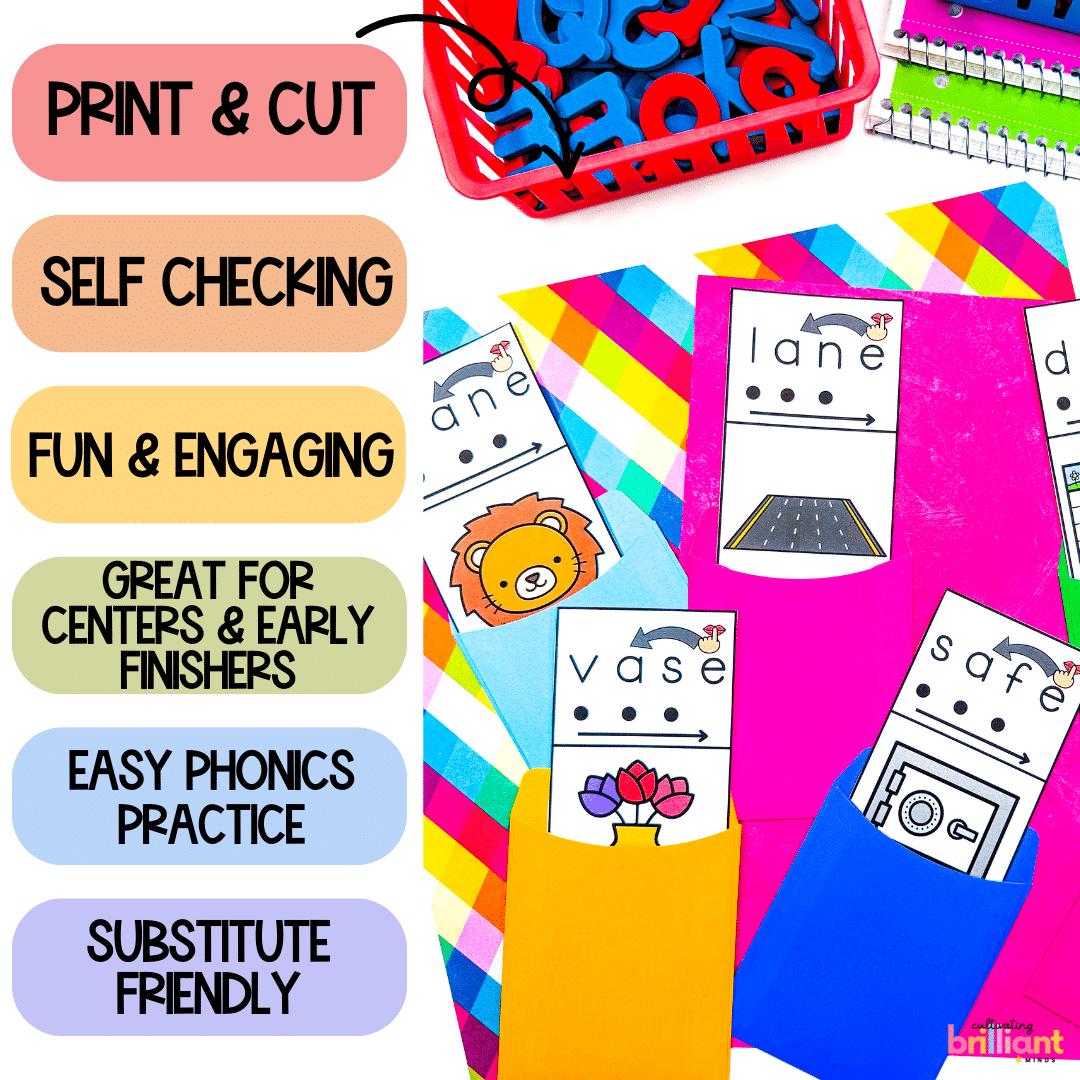 Get your students reading CVCe Long A Words like pros with these fun and engaging self checking mystery word phonics centers! Featuring 22 Long A Words, your students will be decoding and reading CVCe Long A words in no time!