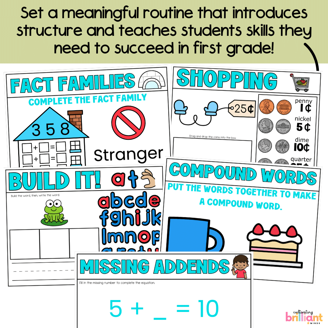 - introduce your 1st grade students to essential first grade literacy and math skills