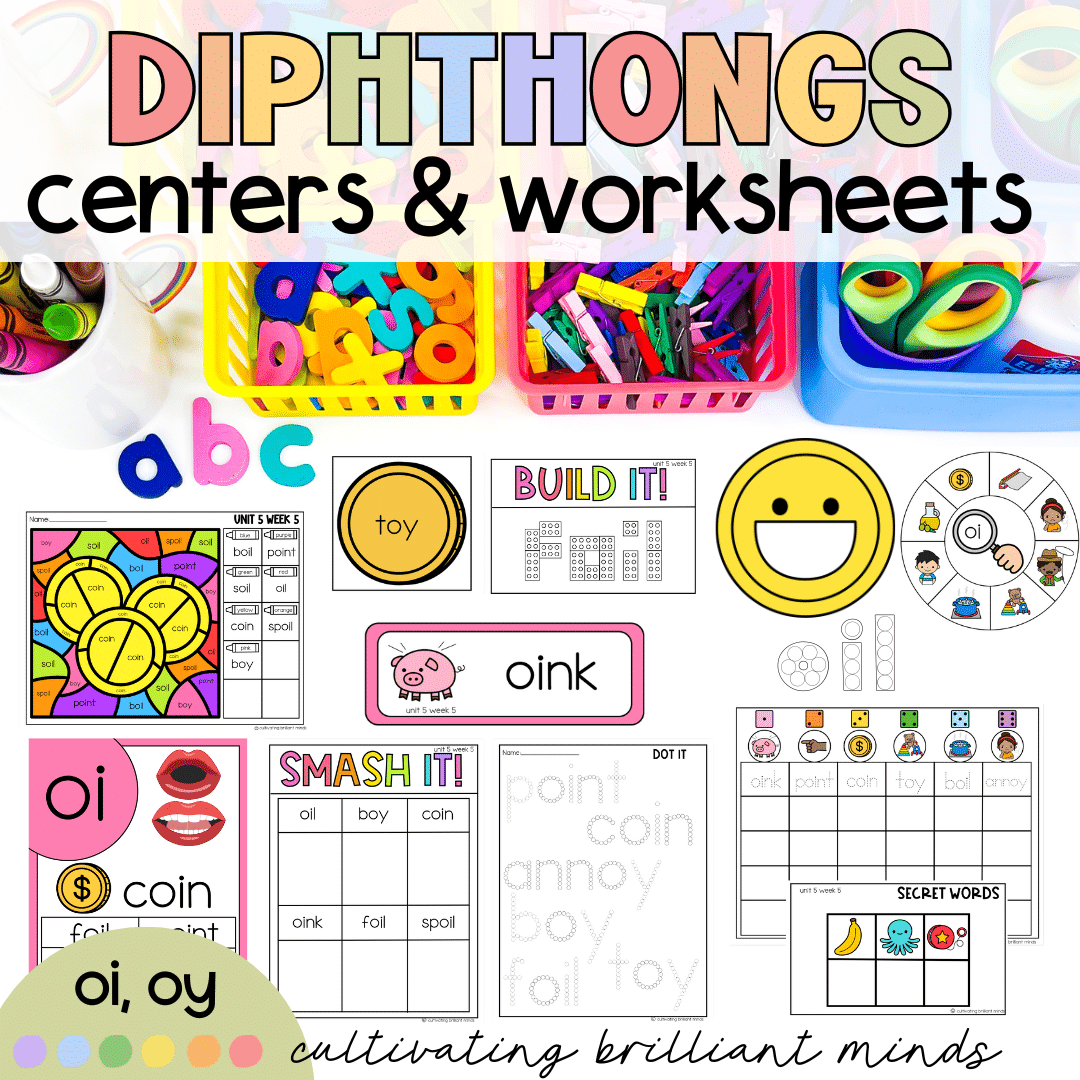 Diphthongs OI OY Phonics Centers & Worksheets | Phonics Activities