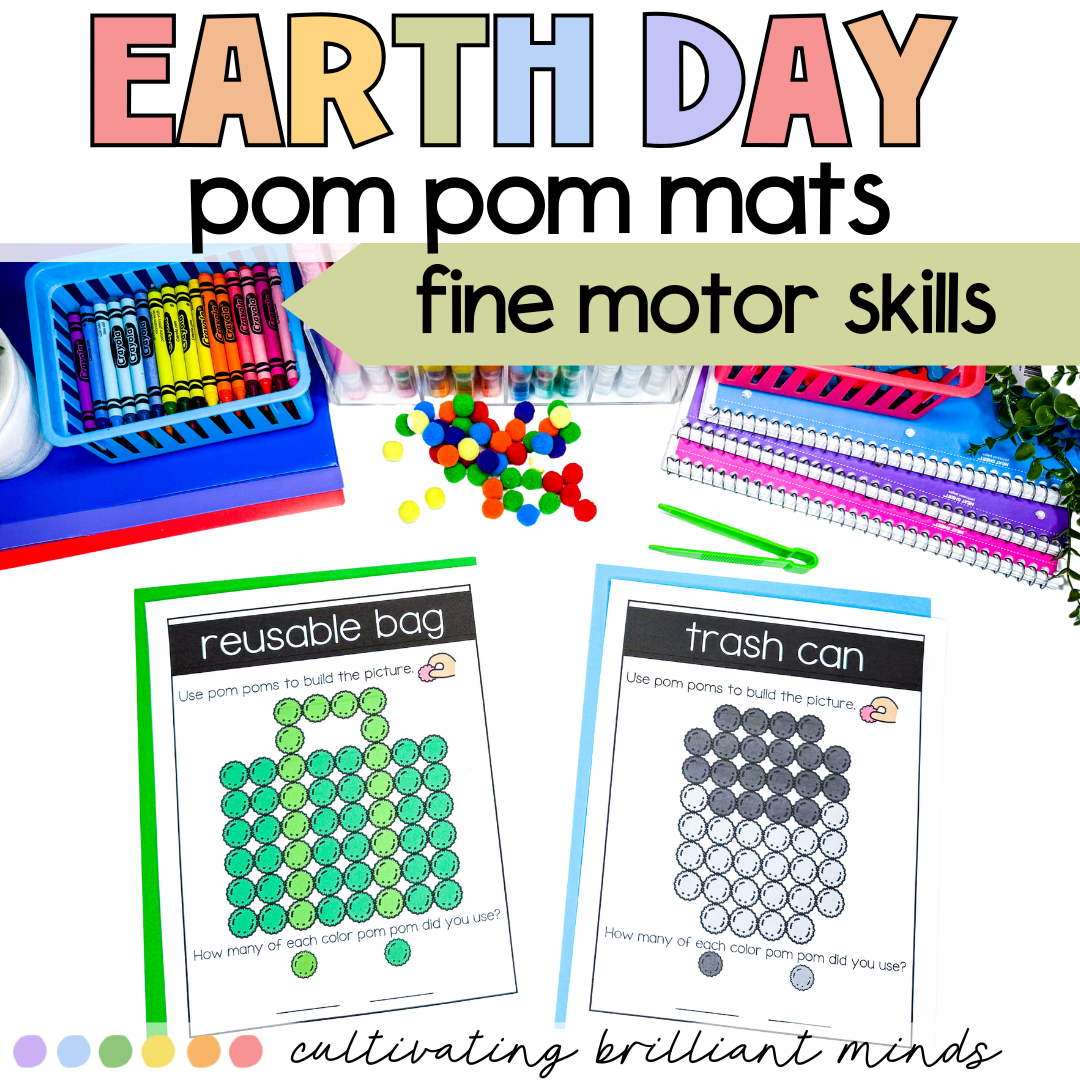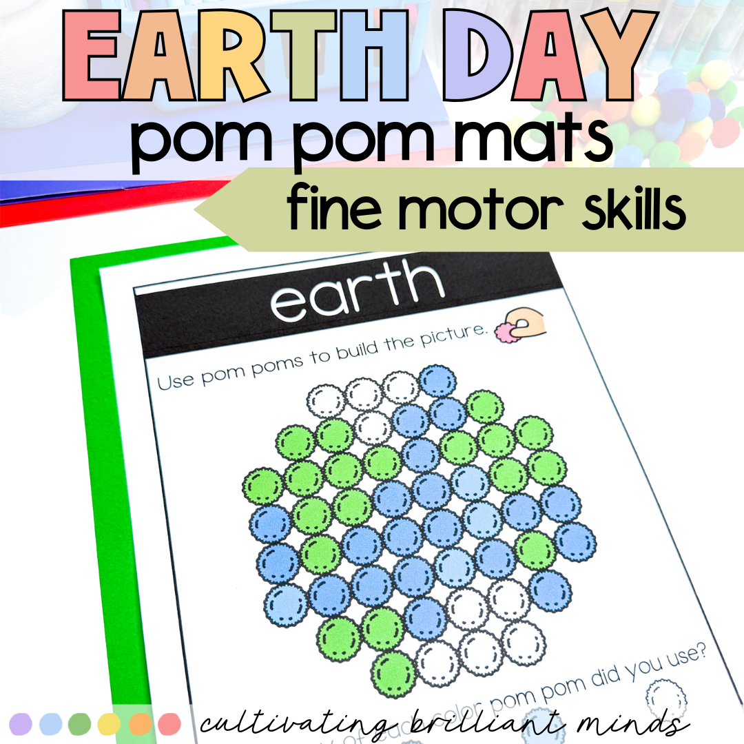 The hands-on and engaging Earth Day Pom Pom Mat center is perfect if you’re looking for a fun, low-prep center! Simply print & laminate! Students will love these Earth Day Activities! They will enjoy creating earth-themed items with pom poms! These are perfect for targeting motor skills & make great centers or morning tubs.