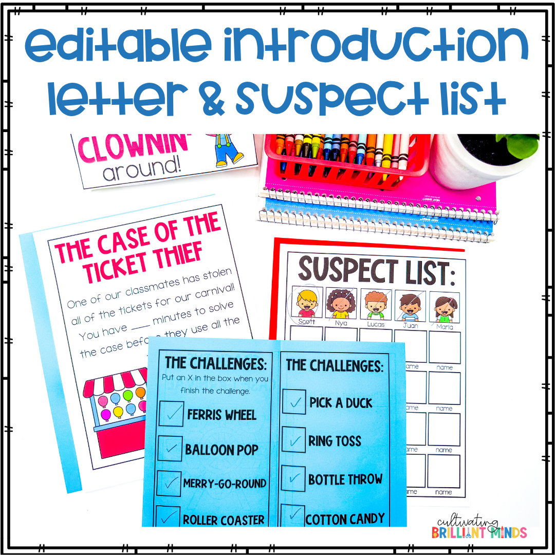 Get your students practicing essential math skills like pros with this fun Editable Carnival End of the Year Themed Day Math Mystery Escape Room Game. Featuring editable 8 math tasks, your students will have a blast completing challenges to find out which of their classmates is the ticket thief!