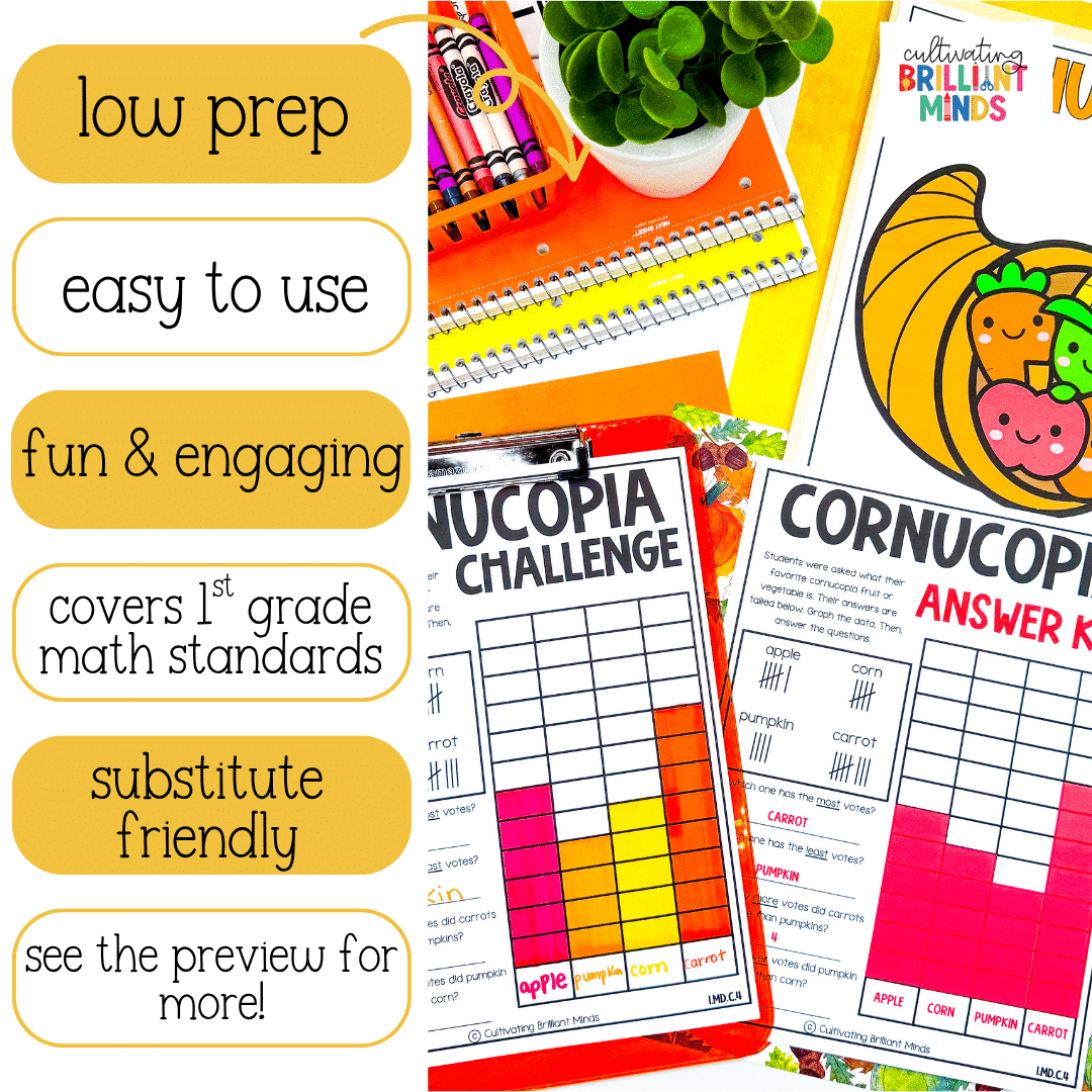 Organize, represent, and interpret data with up to three categories; ask and answer questions about the total number of data points, how many in each category, and how many more or less are in one category than in another.