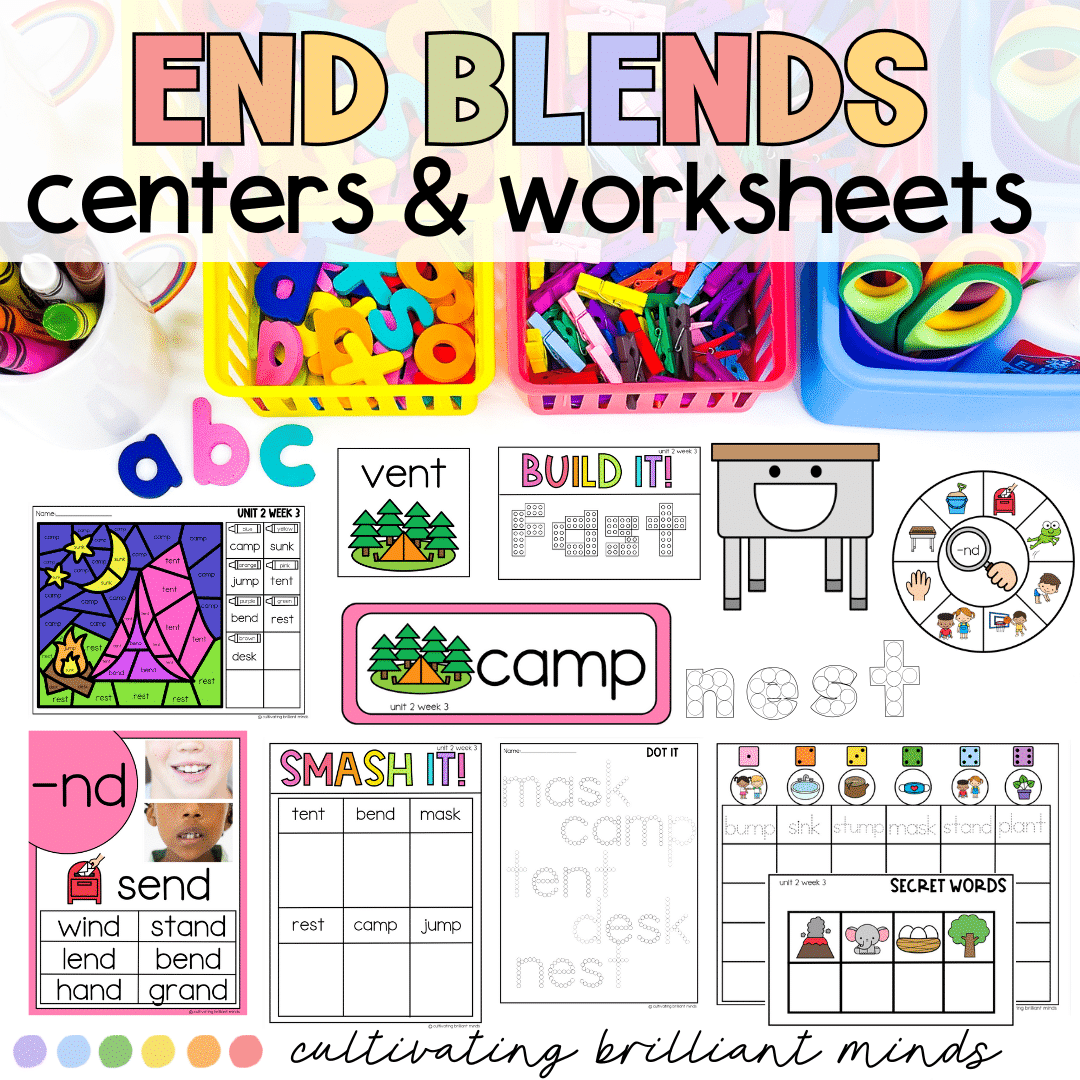 End Blends Phonics Centers | Literacy Centers | Kindergarten, First Grade
