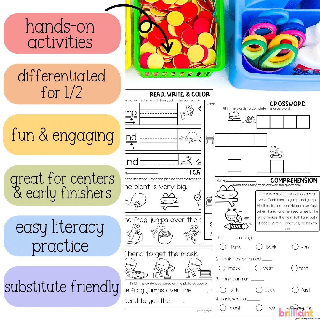Are you guilty of having worksheets for every center? (don’t worry – I was, too!). This is why I created these hands-on centers that focus on phonics patterns and motor skills. With a mixture of fun worksheets and hands-on activities, your students will learn their phonics patterns while staying engaged (which also decreases behavioral problems – WIN-WIN!!)
