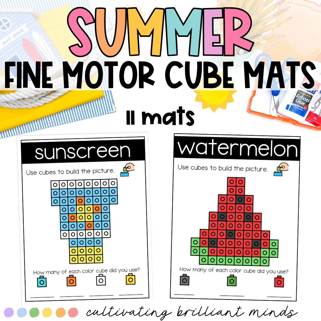“The hands-on and engaging End of the Year Summer Snap Cube center is perfect if you’re looking for a fun, low-prep center! Simply print & laminate! Students will love creating summer-themed items with snap cubes! These are perfect for targeting motor skills & make great centers or morning tubs.