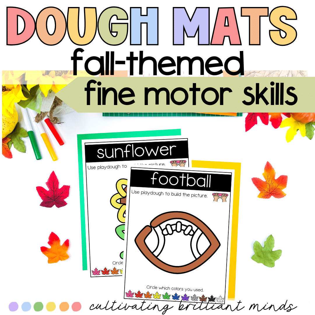 The hands-on and engaging Fall Dough Mats center is perfect if you’re looking for a fun, low-prep center that focuses on motor skills! Simply print & laminate! Students will love creating Halloween-themed items in playdough! These dough activities are perfect for targeting motor skills & make great centers or morning tubs.