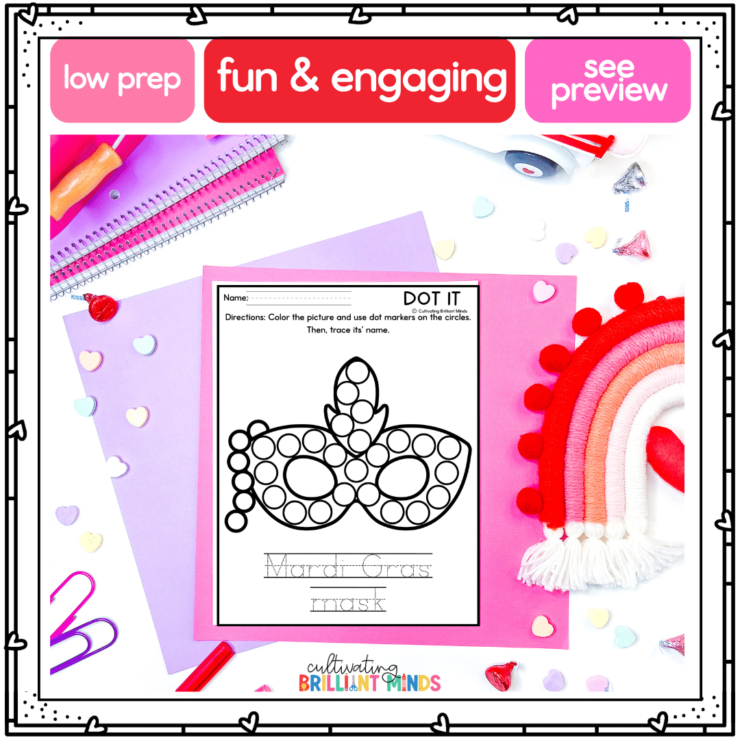 February Dot Markers Fine Motor Skills Activities Valentine’s Day Mardi Gras K/1
