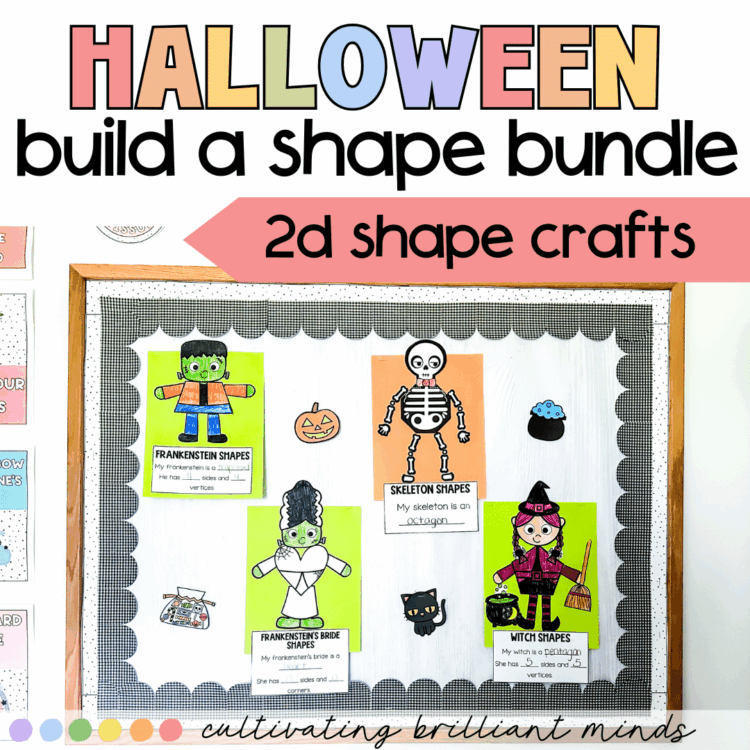 Practice 2D Shapes with these fun Halloween shape crafts! Students will choose a 2D shape and create their Halloween character. Choose from 3 recording sheets. This also makes a cute bulletin board display!