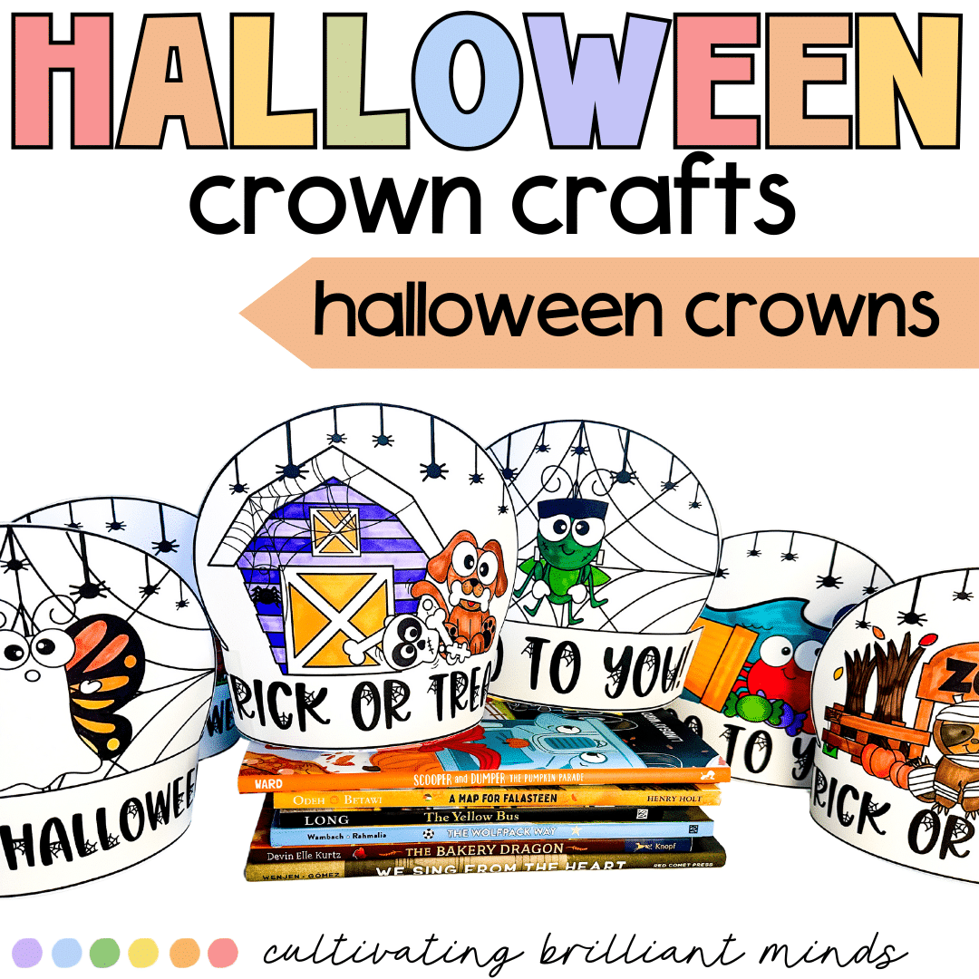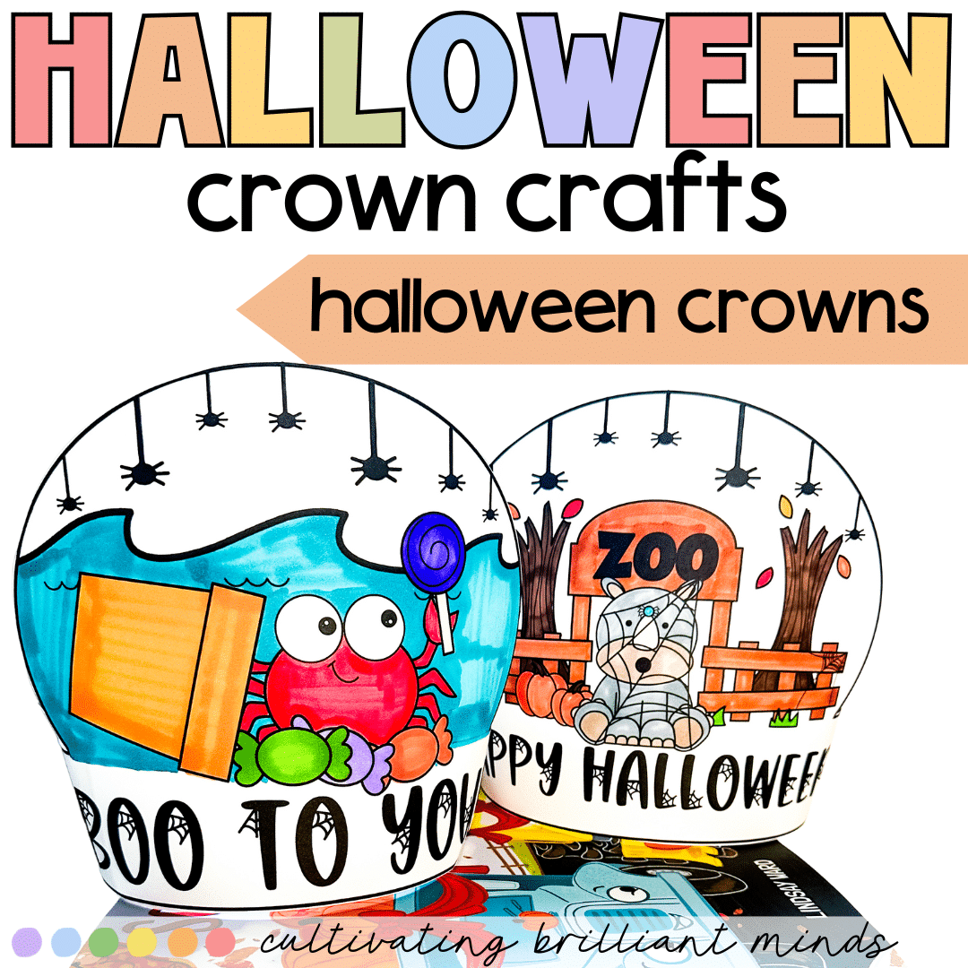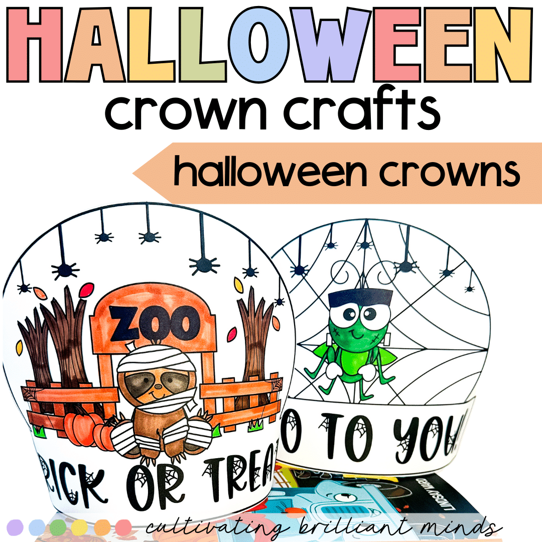 These fun Halloween Crowns are perfect for your Halloween Party! Choose from black and white for students to color on their own, or colored crowns.