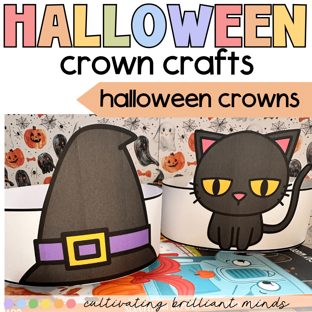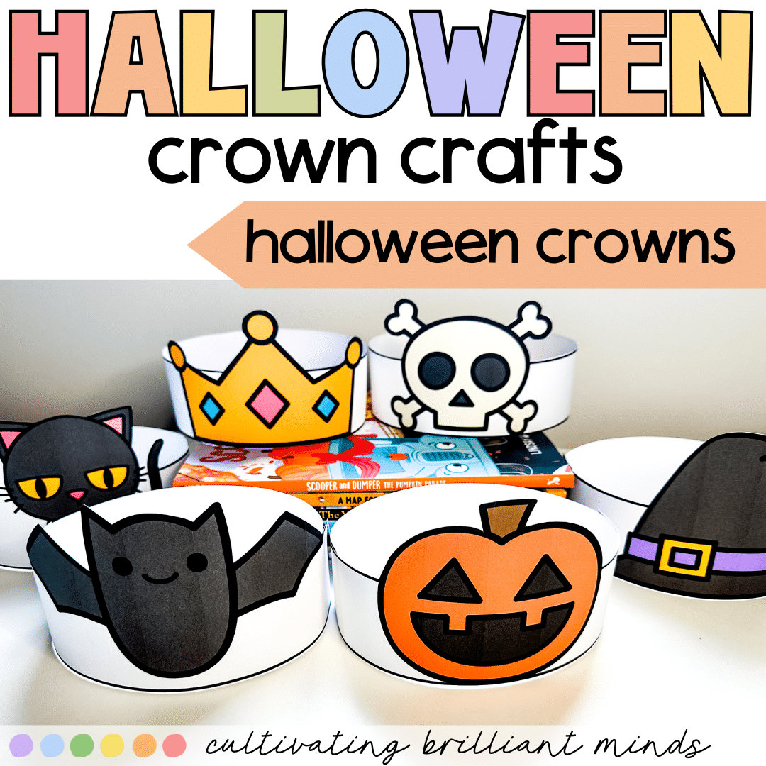 These fun Halloween Crowns are perfect for your Halloween Party! Choose from black and white for students to color on their own, or colored crowns.