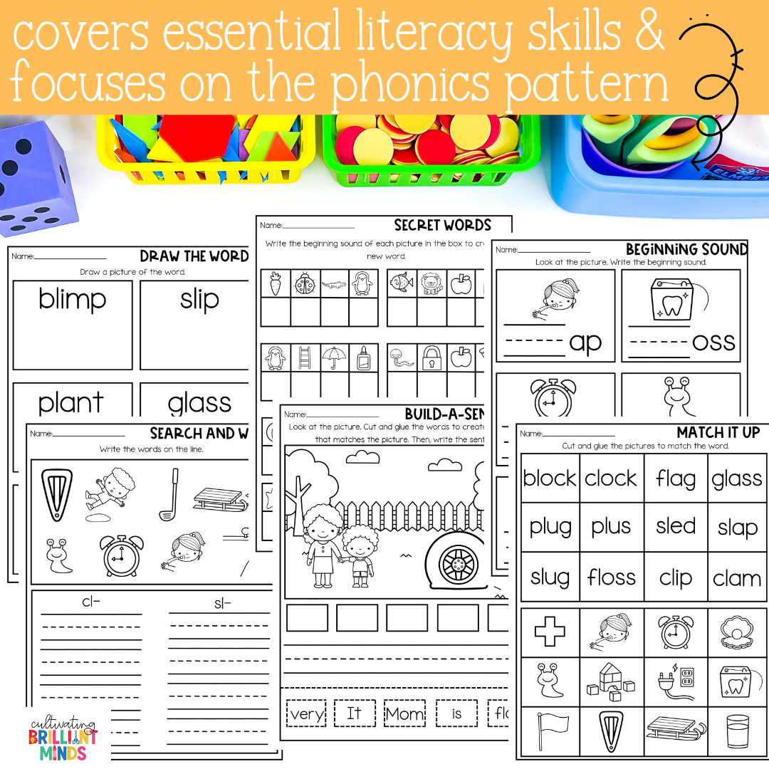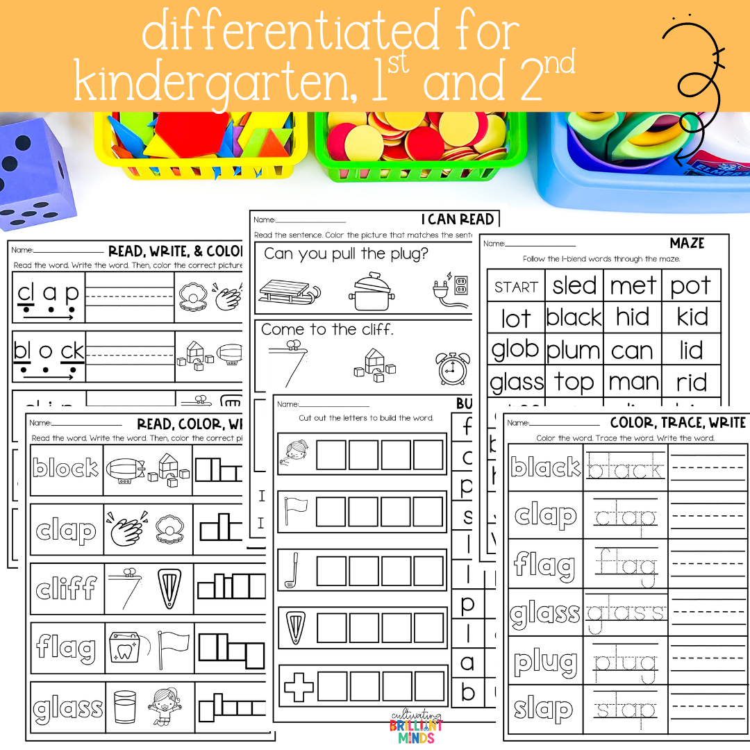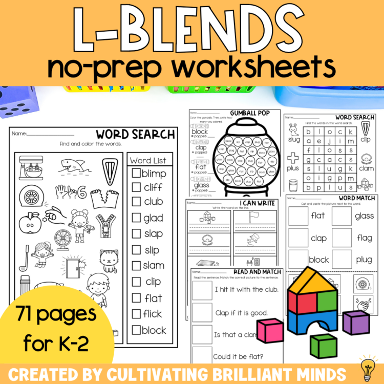 Keywords: Kindergarten | First Grade | Second Grade | L Blends | No Prep Literacy Worksheets | No Prep Phonics Worksheets