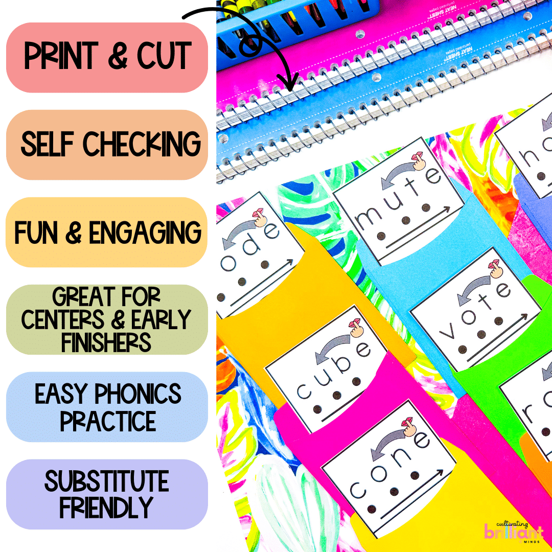 Get your students reading CVCe Long E, O, and U Words like pros with these fun and engaging self checking mystery word phonics centers! Featuring 25 long e, o, and u words, your students will be decoding and reading words with this phonics pattern in no time!