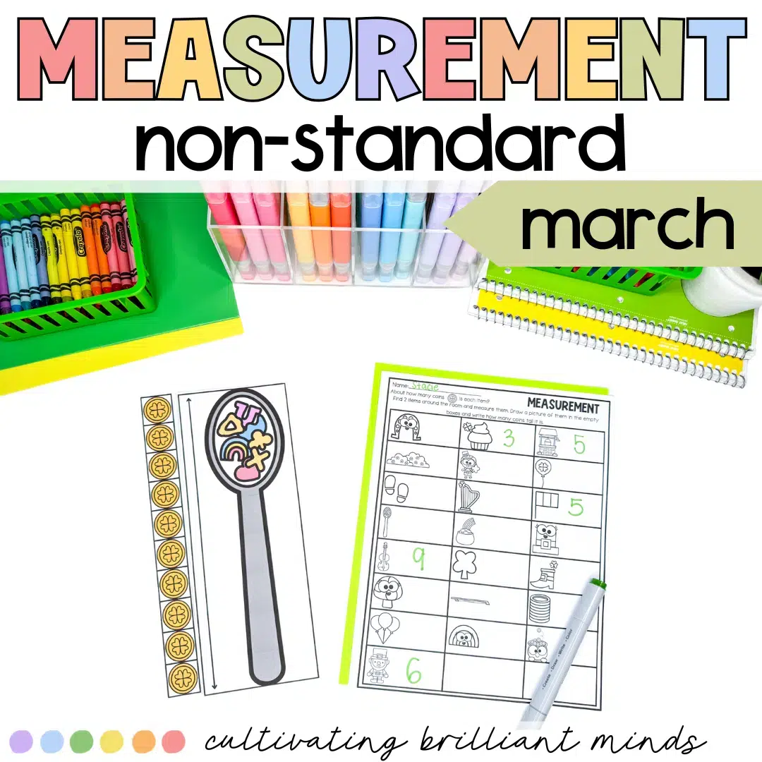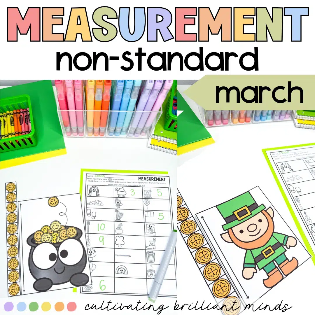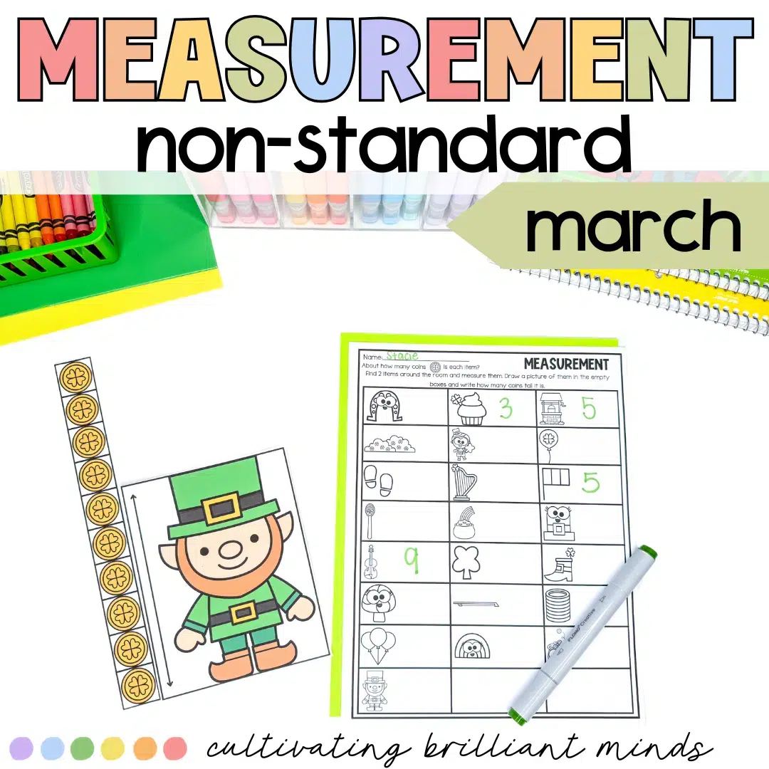 Practice measurement this March with this fun St. Patrick’s Day-themed nonstandard measurement center. With 22 measurement cards & a recording sheet, this center is very low-prep and will keep your students engaged! 2 bonus sections on the recording sheet are empty for students to measure two items around the room.
