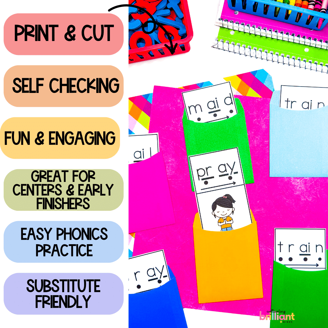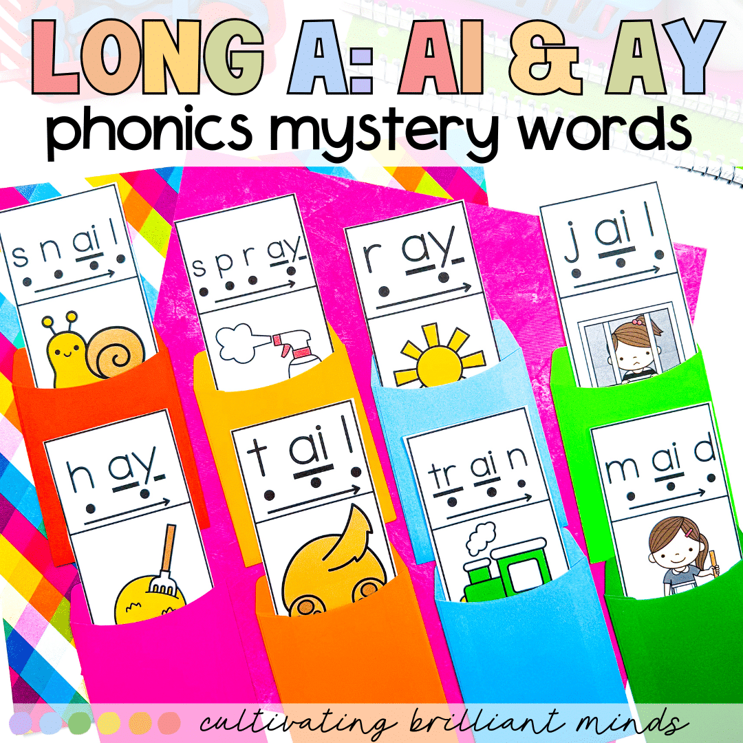 Get your students reading Long A AI and AY Words like pros with these fun and engaging self checking mystery word phonics centers! Featuring 16 Long A Words, your students will be decoding and reading AI and AY words in no time!