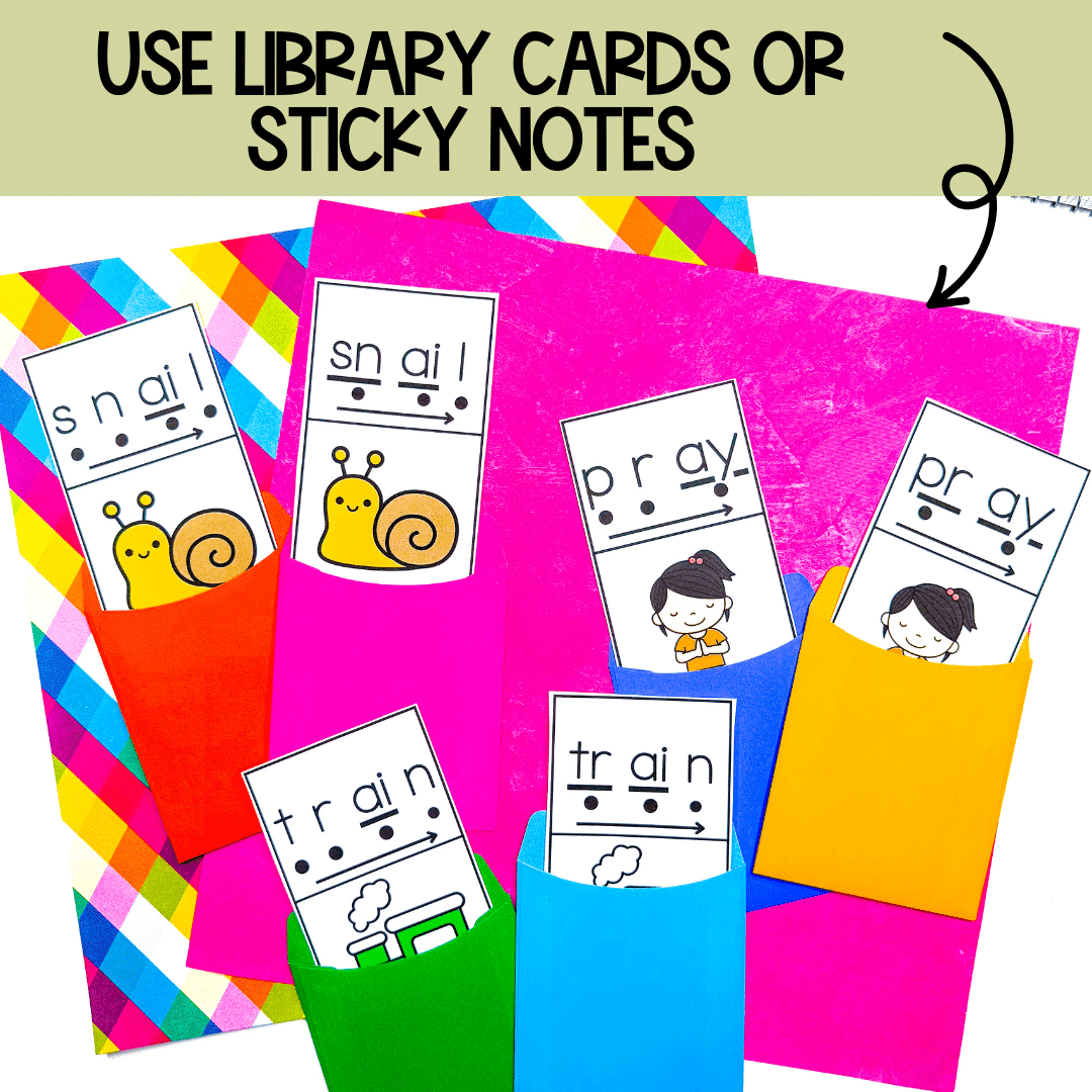 - Second version for train, pray, paint, spray and sail – in case your students haven’t learned blends yet.