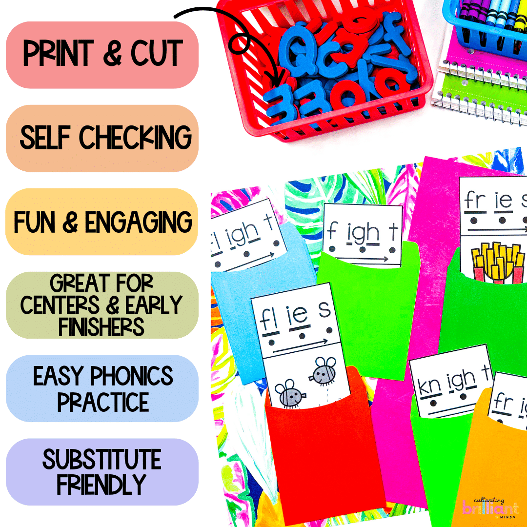 Get your students reading Long I Words (IGH, IE, Y) like pros with these fun and engaging self checking mystery word phonics centers! Featuring 20 long i words, your students will be decoding and reading digraphs in no time!