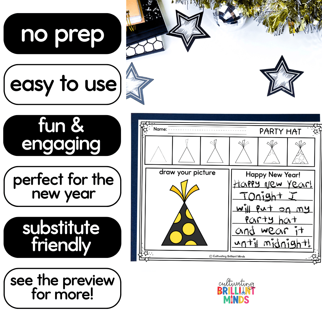 Keywords: New Year’s Activities | Directed Drawing | Writing Prompts | New Year Writing | New Year’s Eve
