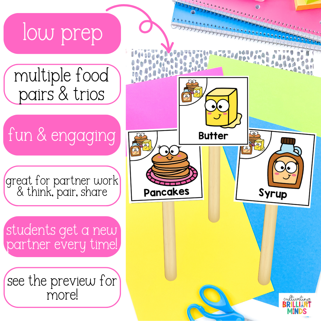 Partner Food Pair Up Set Cards Groups of 2 and 3 | Back to School Partner Cards